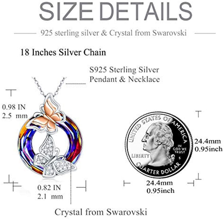 Crafted from Sterling Silver, this circular Pendant Necklace features Clear Crystal and Cubic Zirconia stones, with a Butterfly design accented in silver and Rose Gold tones.