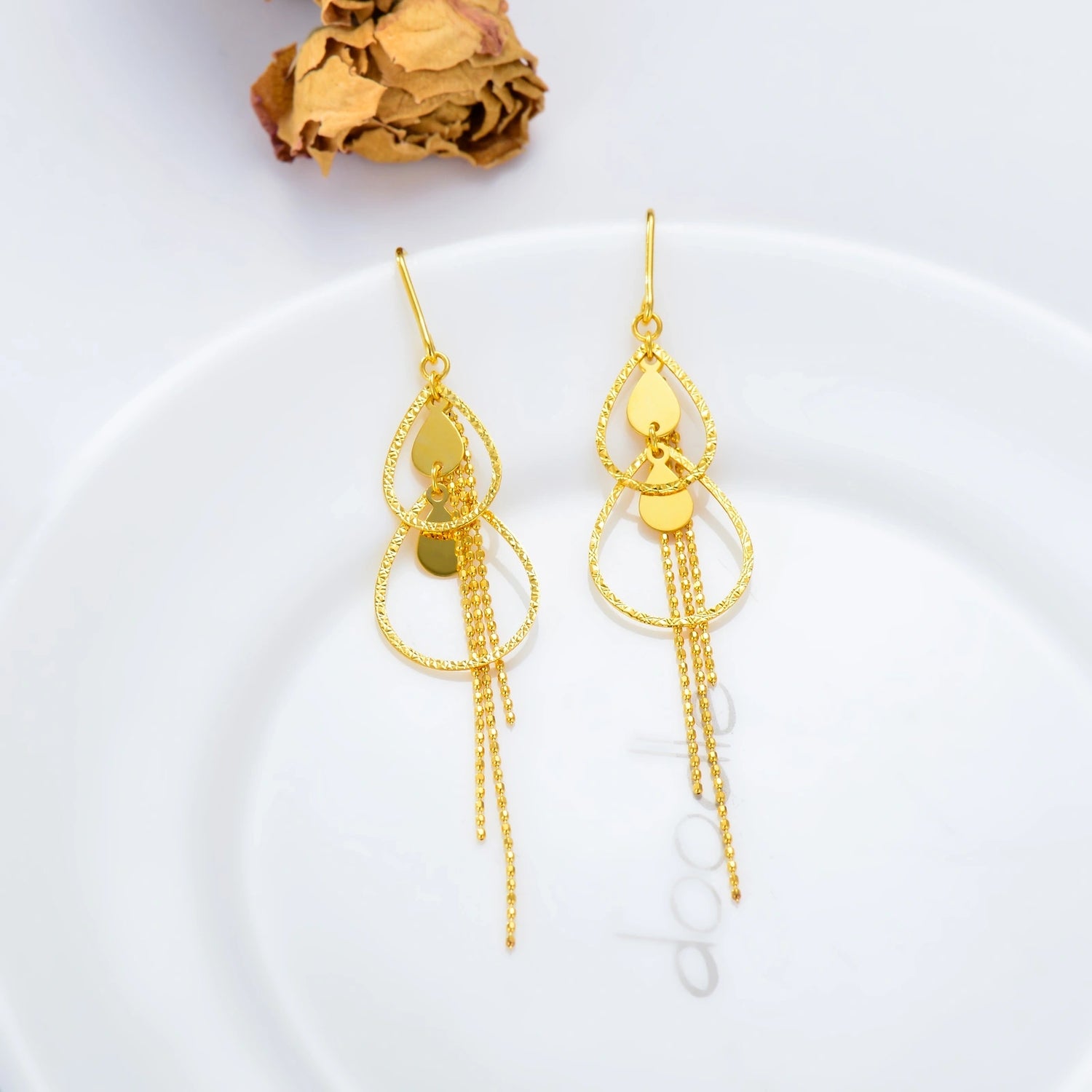 These 18K Gold Oval Shaped Drop Earrings by YFN offer an elegant expression of simplicity, designed for women who appreciate timeless, stone-free sophistication. The elongated oval form creates a graceful silhouette that moves fluidly with the wearer, catching light along its polished curves. Crafted in luxurious 18K gold, the earrings exude understated glamour suited for both casual minimalism and refined evening style. Lightweight and comfortable, they provide effortless versatility, elevating any outfit with clean, modern elegance. This pair becomes a classic staple in a well-curated jewelry collection.