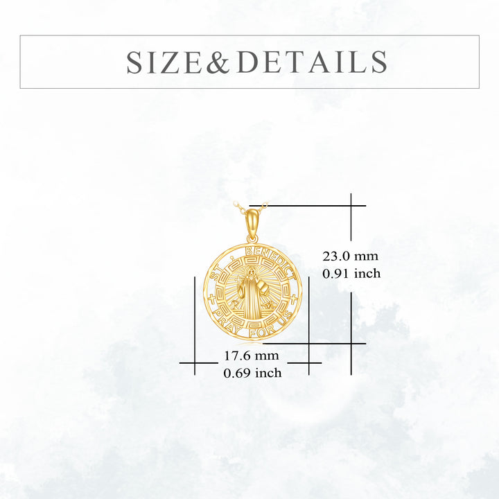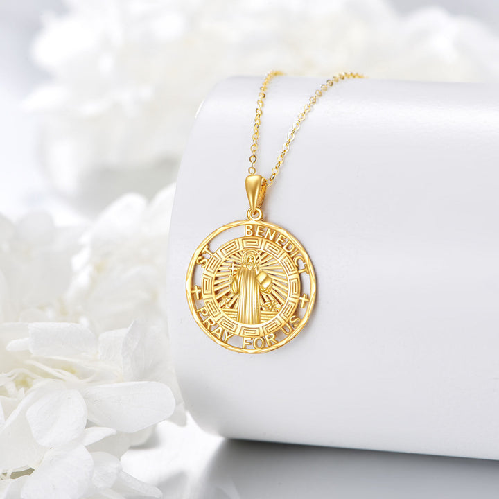14K Gold St Benedict Medal Pendant Necklace