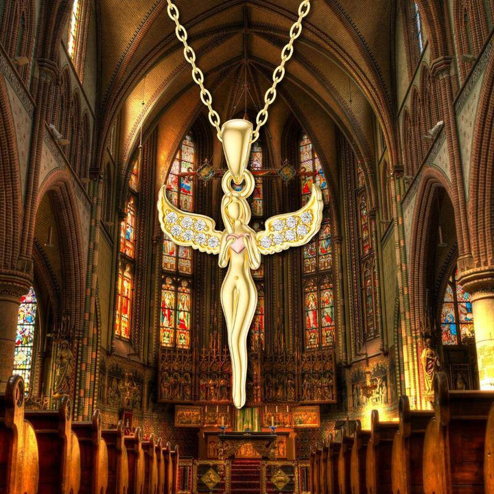This 14K Gold Two-Tone Cubic Zirconia Angel Wing Pendant Necklace by YFN combines the symbolism of love and protection in a radiant heart-and-wing design. Adorned with sparkling CZ stones and offered in gold or rose gold finishes, it’s a luxurious and meaningful piece for women who appreciate timeless beauty.
