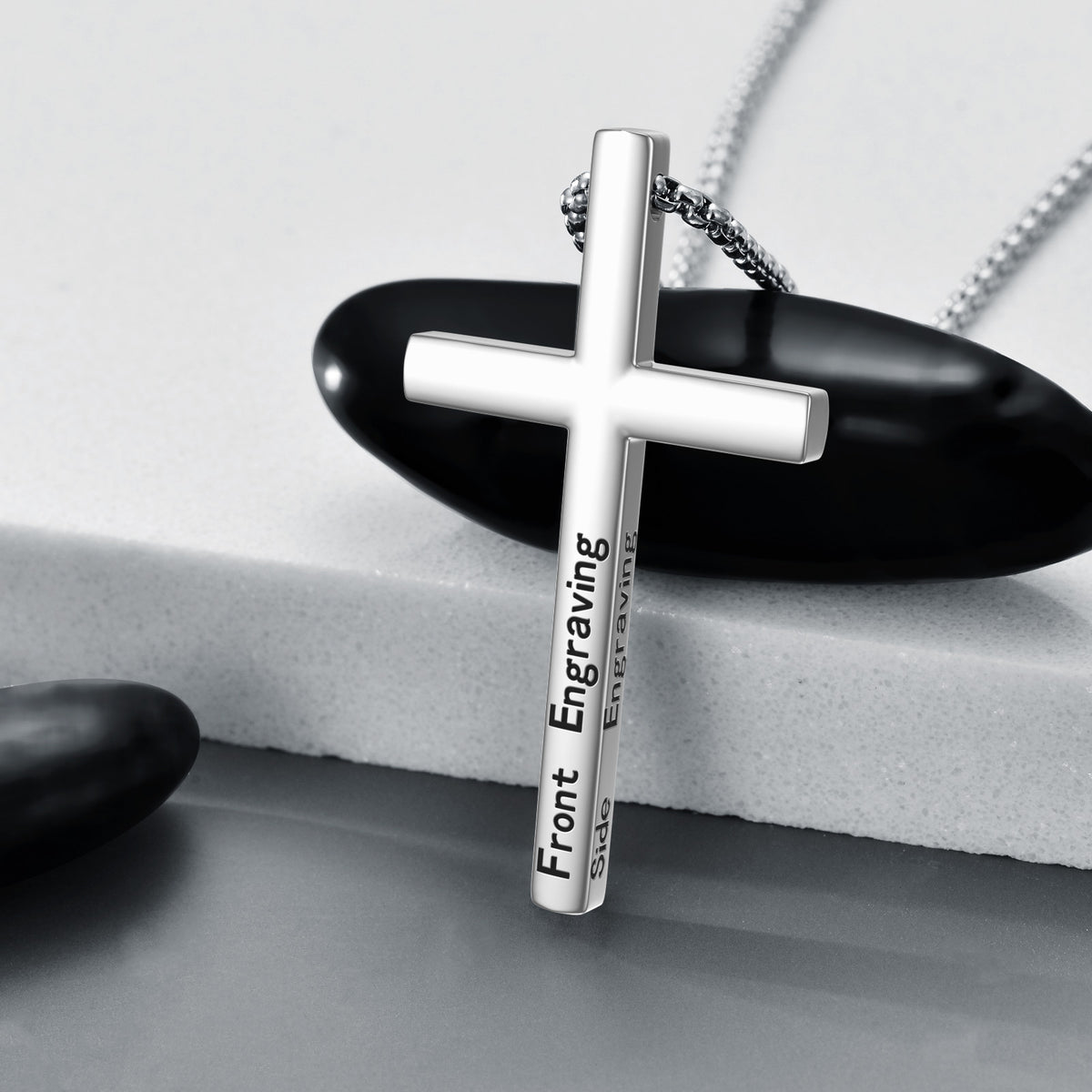 Sterling Silver Personalized Engraving & Cross Pendant Necklace