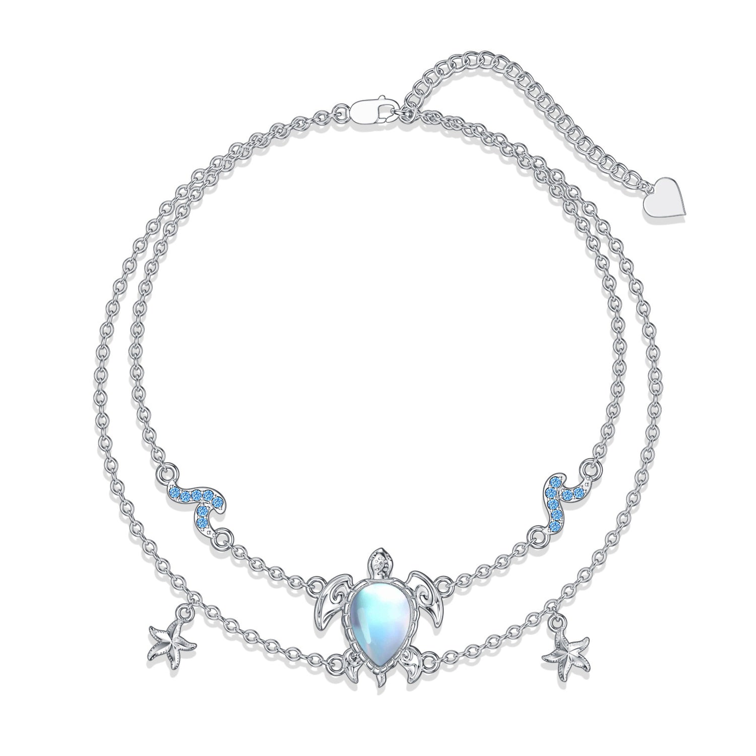 This Sterling Silver Moonstone Sea Turtle Starfish With Spray Layered Bracelet by YFN offers an irresistible, oceanic allure for women. Crafted from high-quality sterling silver and elegantly white gold plated, this layered bracelet features a harmonious blend of stunning moonstone, mystical sea turtles, and whimsical starfish charms. Each piece is meticulously designed, effortlessly capturing the essence of the sea's natural beauty, making it a timeless addition to any jewelry collection.
