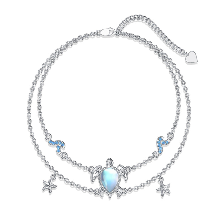 Sterling Silver Moonstone Sea Turtle Starfish With Spray Layerered Bracelet For Women