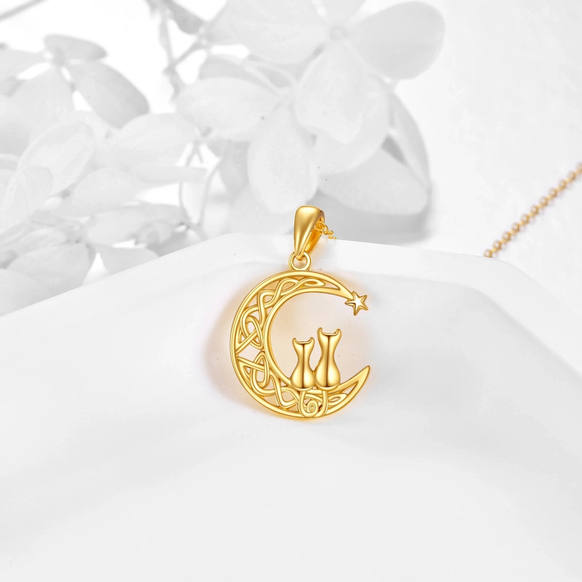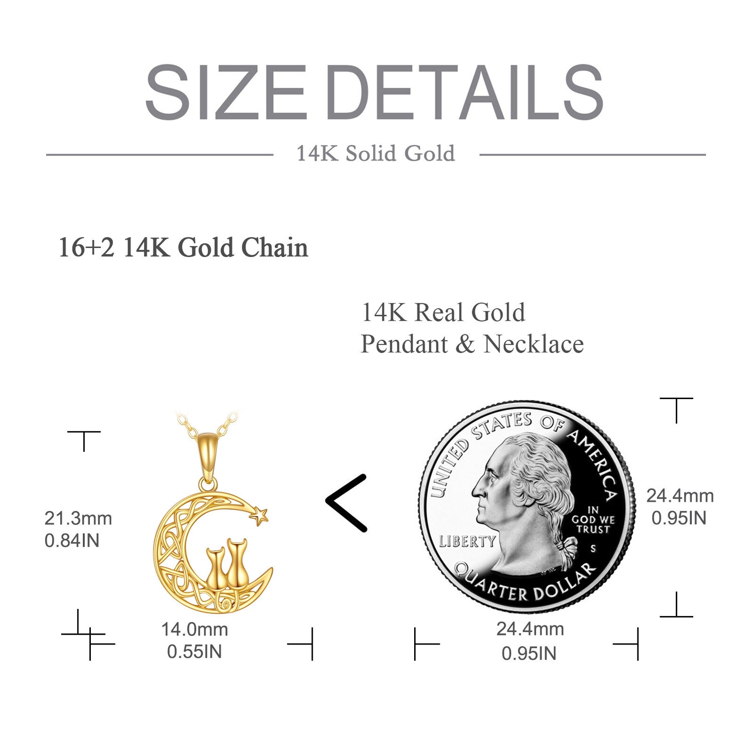 14K Gold Couple Cat & Moon Star Pendant Necklace