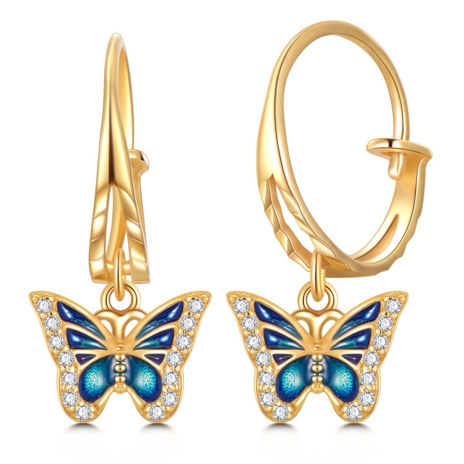 These 14K Gold Moissanite Butterfly Drop Earrings by YFN merge feminine grace with dazzling brilliance. The moissanite stones illuminate the butterfly wings for a luxurious, airy look.