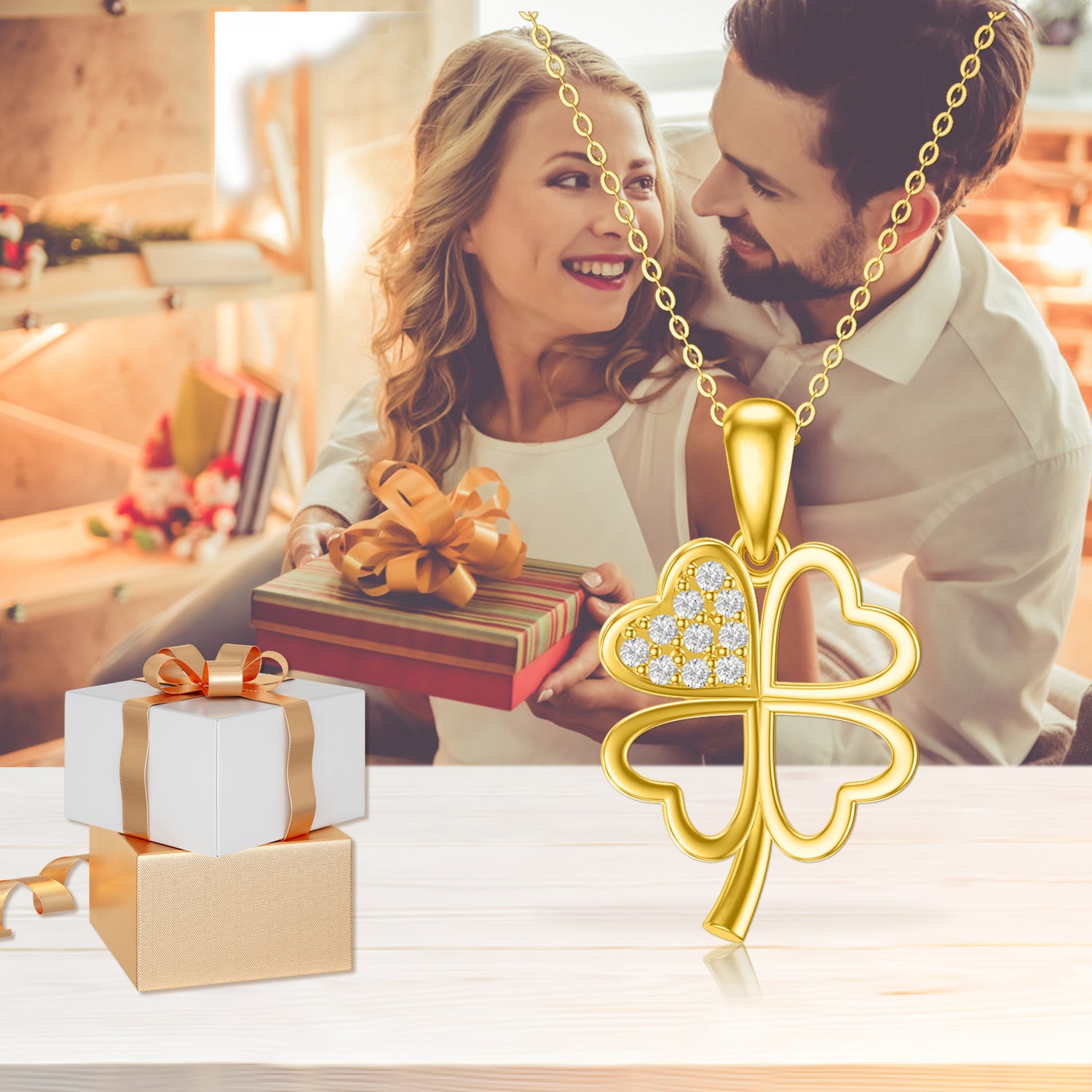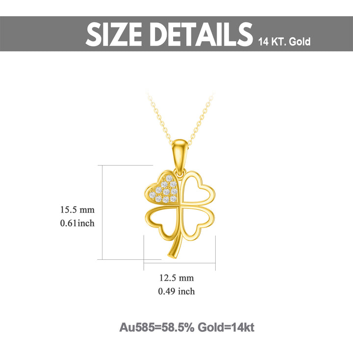 This Women's Pendant Necklace is crafted from 14K Gold, featuring a Four-leaf Clover Design with a Dazzling Round Cubic Zirconia Centerpiece.