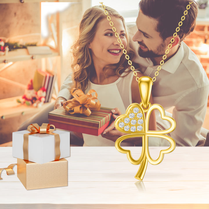 This 14K Gold Round Cubic Zirconia Four-leaf Clover Pendant Necklace by YFN is an exquisite piece that symbolizes good fortune and elegance for women. Crafted from 14K Gold, this Pendant Necklace showcases a beautifully designed four-leaf clover, adorned with a dazzling round Cubic Zirconia centerpiece for added brilliance. Perfect for any occasion, it effortlessly combines sophistication and charm, making it an ideal gift or cherished accessory.