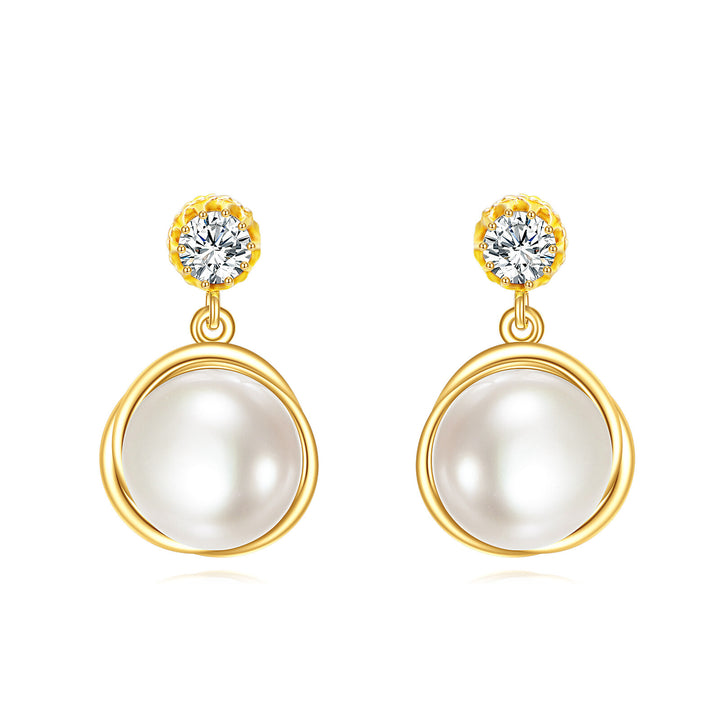 14K gold. Round-cut pearl studs. Stone-free beyond pearl centerpiece. Secure post-back closures.