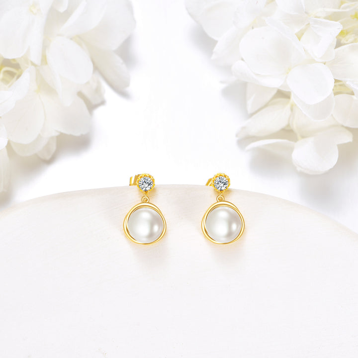 14K Gold Round Cut Pearl Stud Earrings