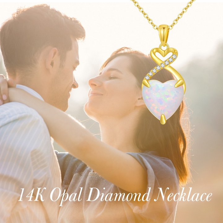 This 14K Gold Cut Lab Created Diamond & Opal Heart Pendant Necklace by YFN marries vibrant romance with refined sophistication. The heart-cut lab-created diamond sparkles with exceptional clarity, representing love and luminous devotion, while the opal adds dreamy iridescence and emotional depth. Crafted in polished 14K gold, the pendant offers luxurious shine and lasting quality. Ideal for women who appreciate ethically sourced elegance, this necklace elevates both everyday looks and special occasions. A thoughtful gift or personal treasure, it beautifully intertwines timeless charm with modern, eco-conscious luxury.