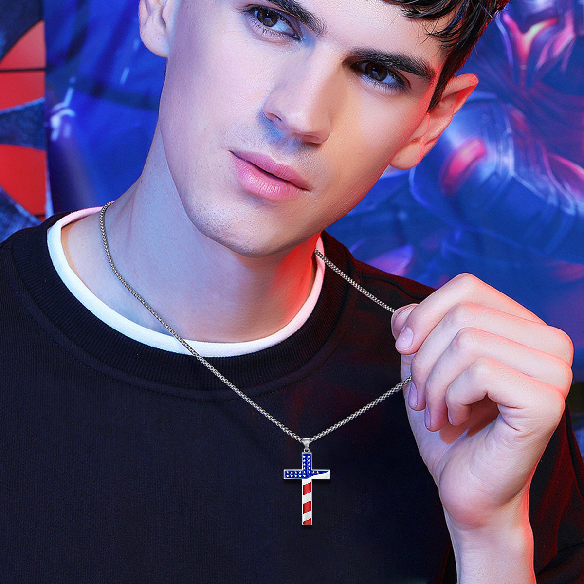 Crafted from high-quality Sterling Silver and expertly White Gold Plated, this stone-free Pendant Necklace features an intricate American Flag Cross.