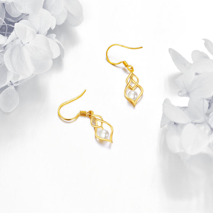 14K Gold Pearl Infinity Symbol Drop Earrings
