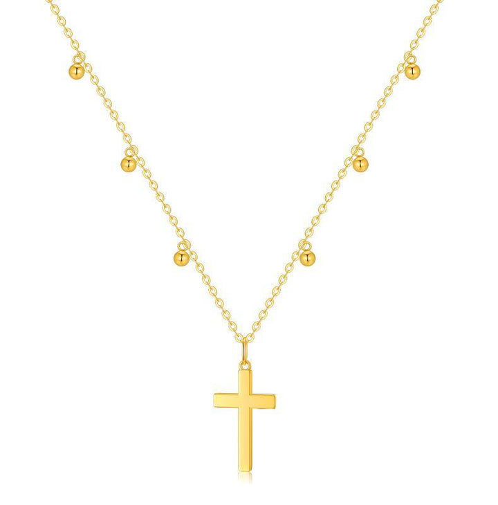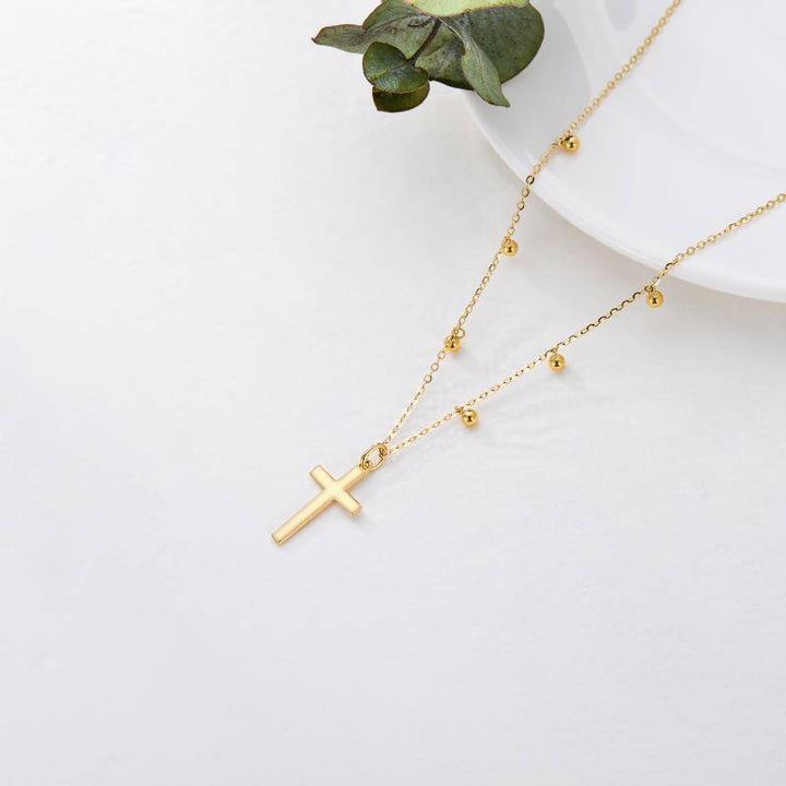 14K Gold Bead & Cross Pendant Necklace