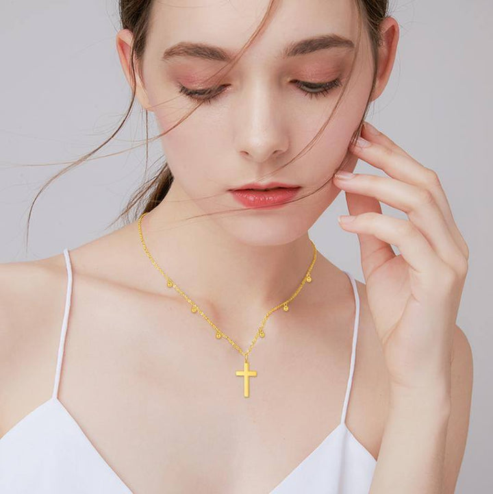 This no-stone Women's Pendant Necklace is Crafted from High-Quality 14K Gold, Featuring a Refined Bead Cross Design.