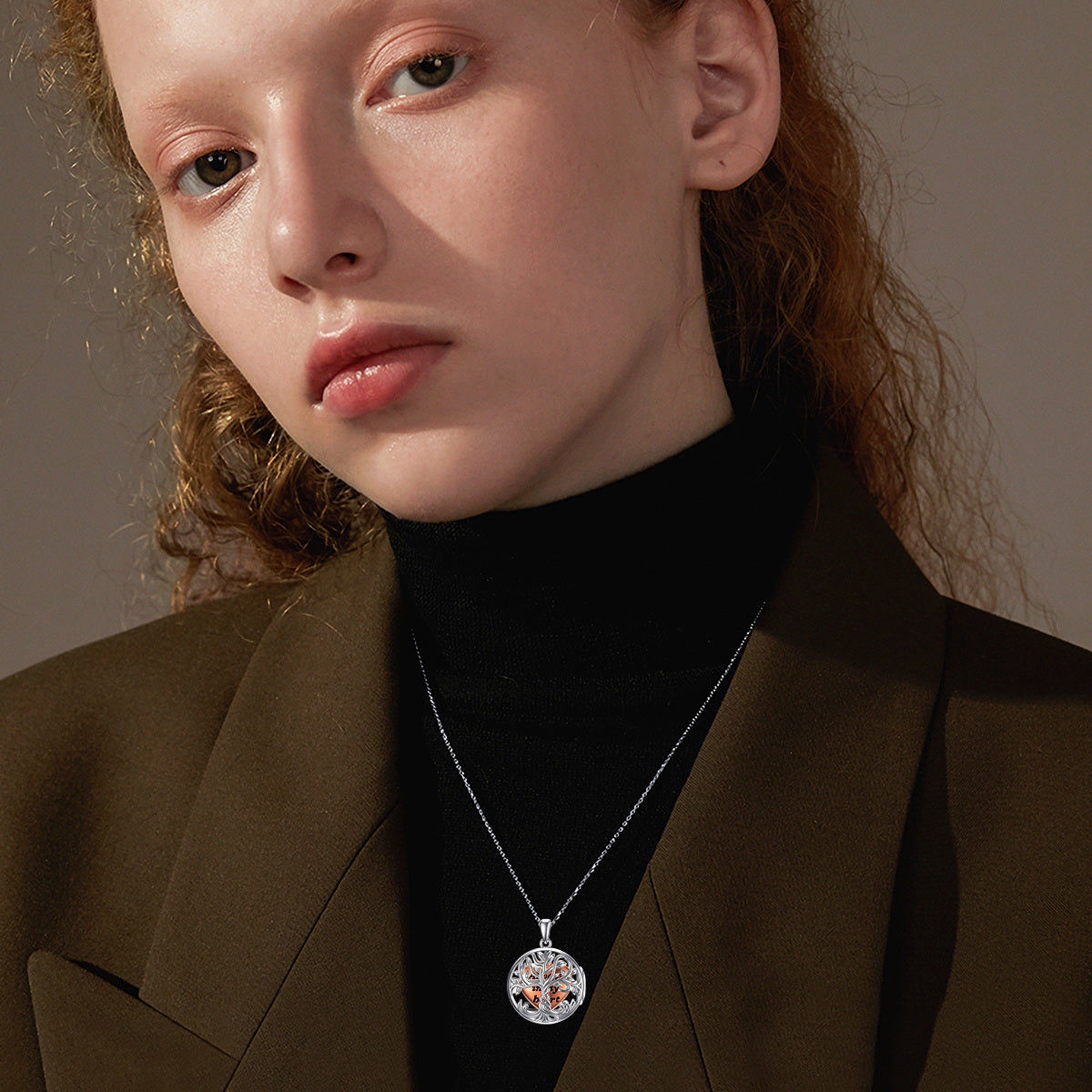 Sterling Silver Two-tone Tree Of Life & Heart Urn Necklace for Ashes with Engraved Word