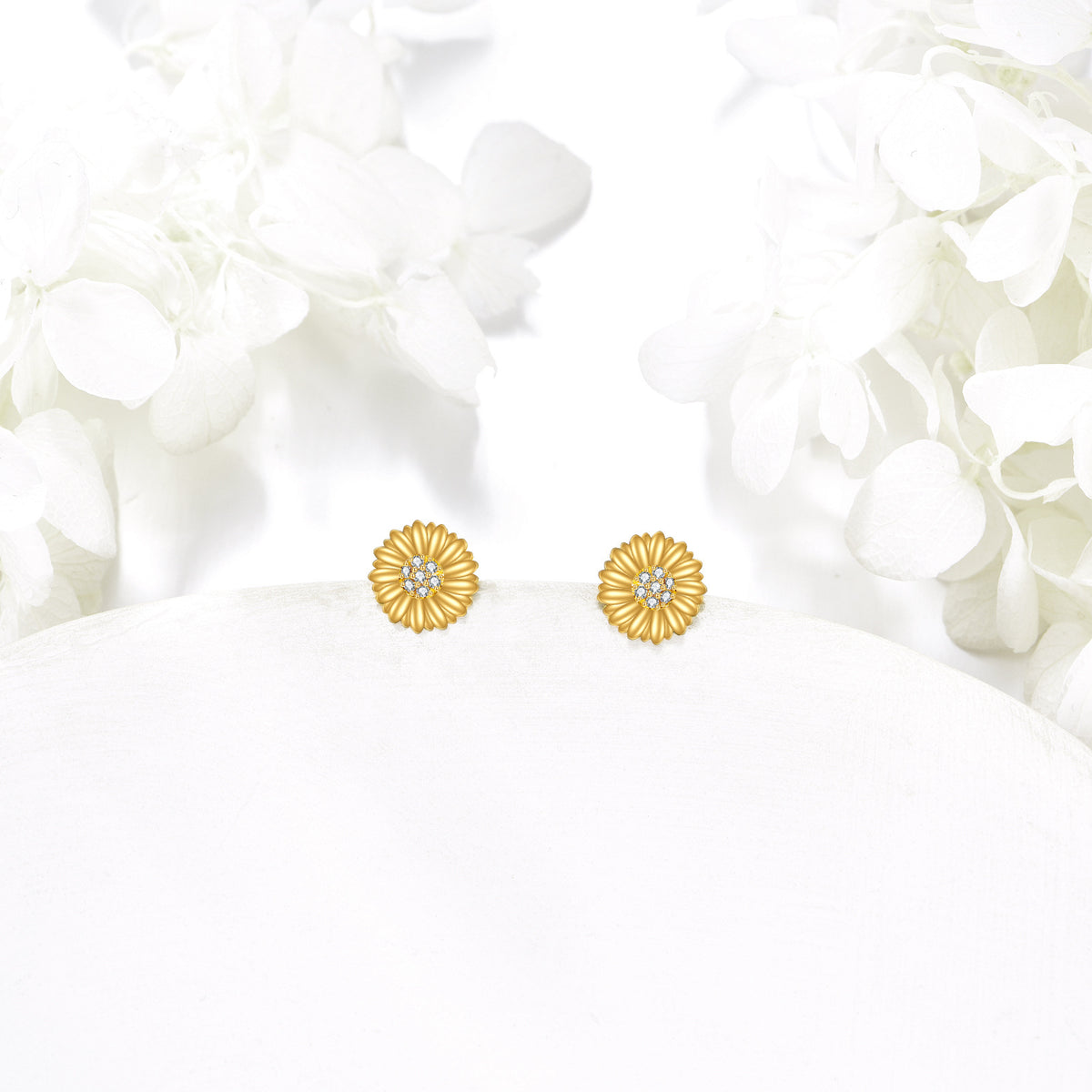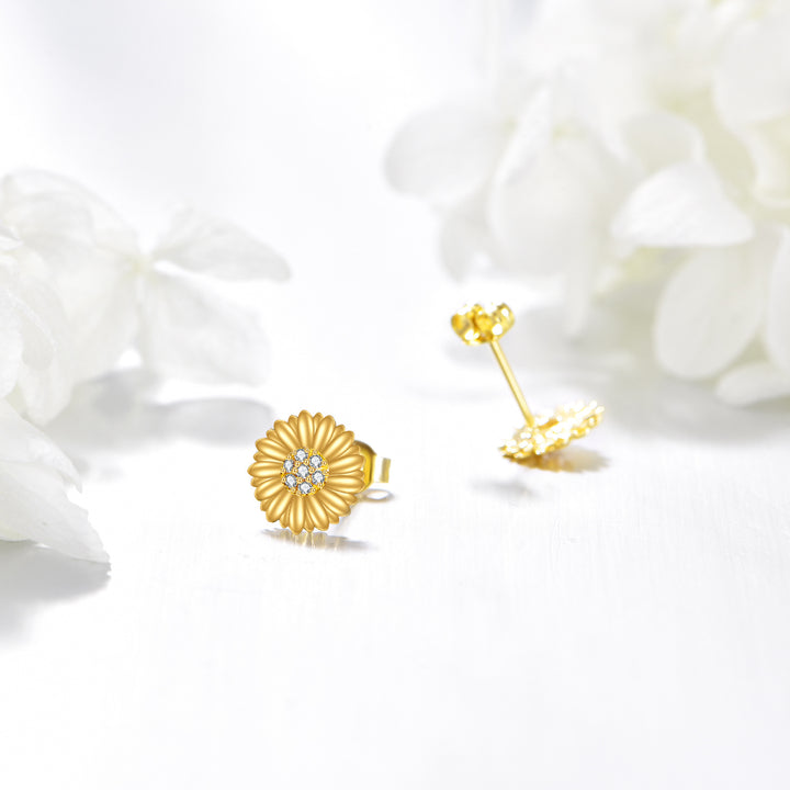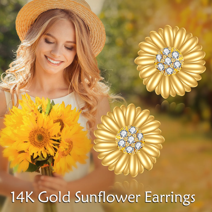 14K Gold Cubic Zirconia Sunflower Stud Earrings