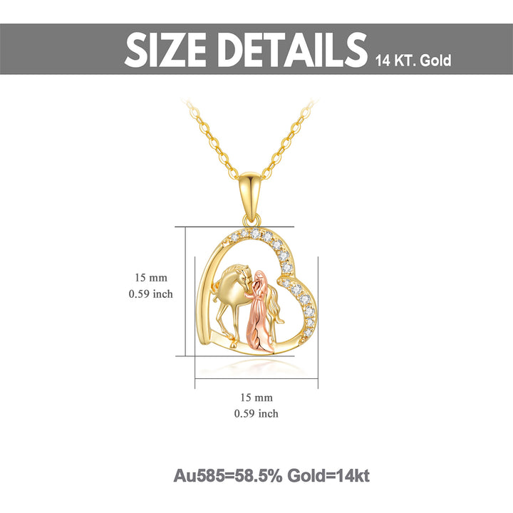14K Gold & Rose Gold Heart Cubic Zirconia Horse Pendant Necklace For Women Best Friends