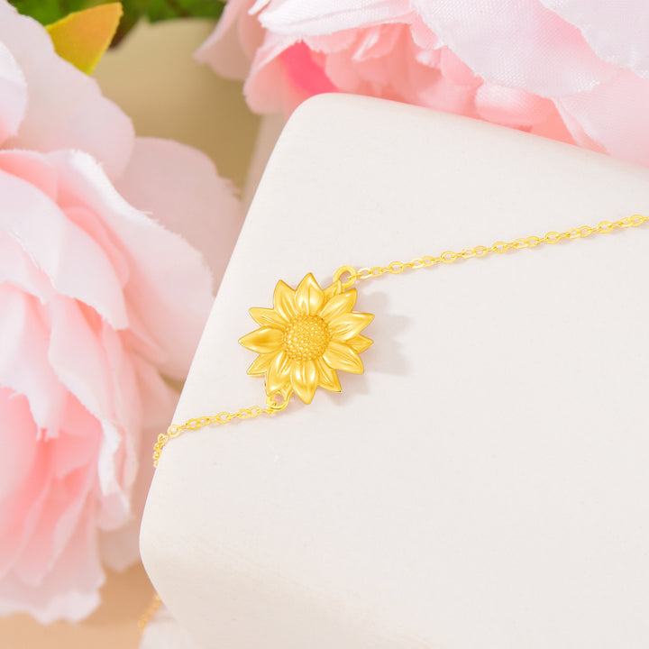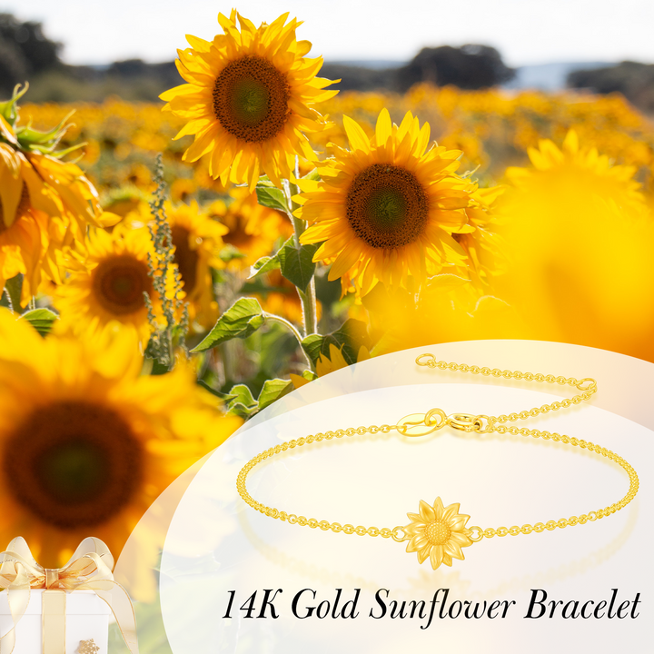 14K Gold Sunflower Charm Bracelet