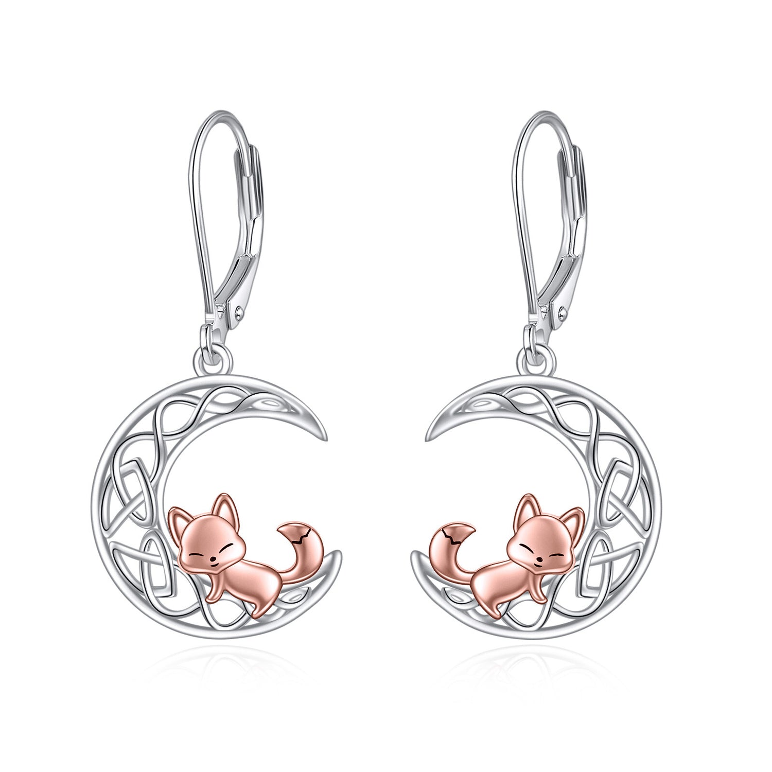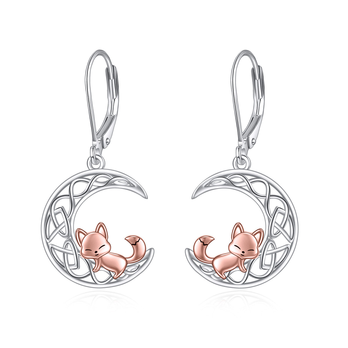 Sterling Silver Two-Tone Fox & Moon With Celtic Knot Lever-Back Earrings For Women