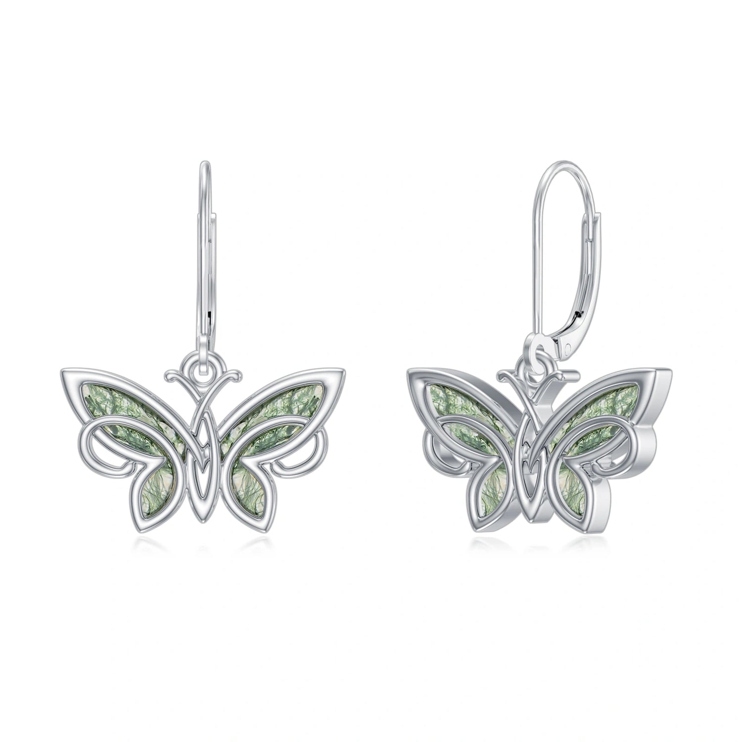Sterling Silver Moss Agate Butterfly Drop Earrings