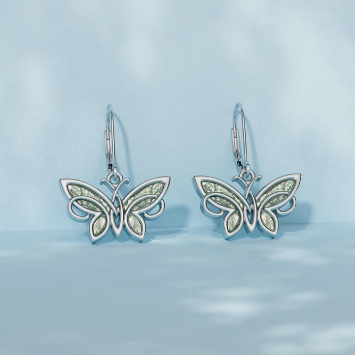 These Sterling Silver Moss Agate Butterfly Drop Earrings by YFN pair natural beauty with delicate movement. Each butterfly is accented with moss agate stones, offering organic elegance enhanced by white gold plating for women who appreciate distinctive and artful jewellery.