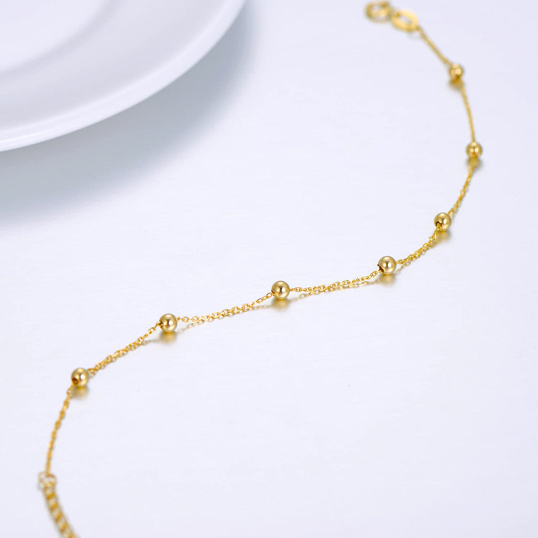 This 14K Gold Couple Bead Station Chain Bracelet by YFN exudes elegance and minimalistic charm, making it a sophisticated accessory for women and a meaningful symbol for couples. Crafted from timeless 14K gold, this exquisite, stone-free bracelet features a sleek bead station design that highlights the pure beauty of the gold. Ideal for gifting or wearing as a set, this piece symbolizes an enduring bond and enduring quality, seamlessly matching any outfit for a touch of everyday luxury.
