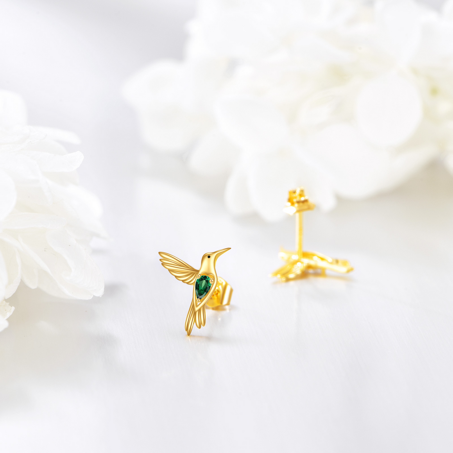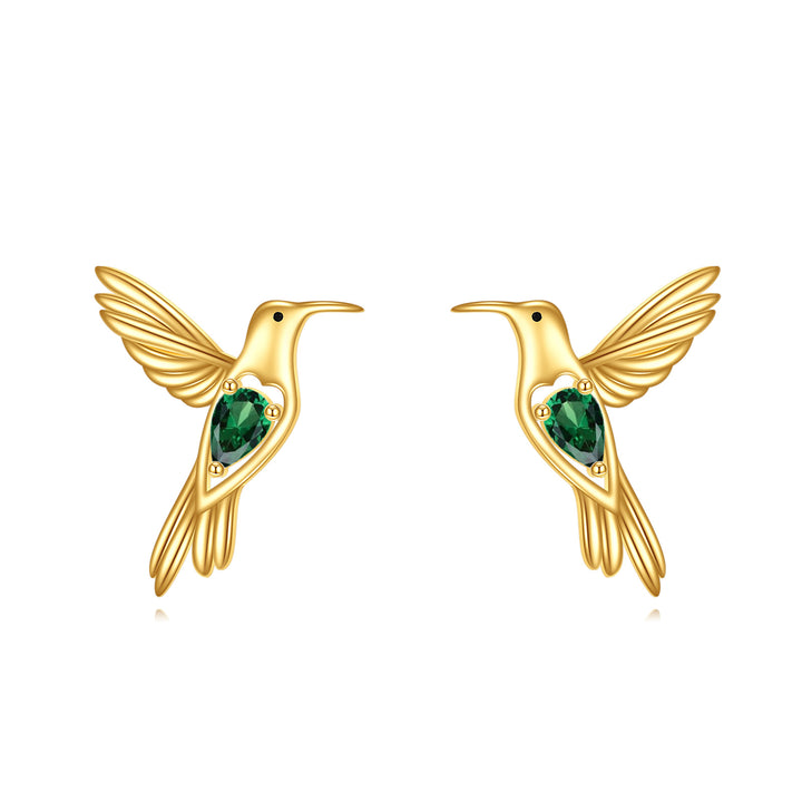 14K Gold Cubic Zirconia Hummingbird Stud Earrings