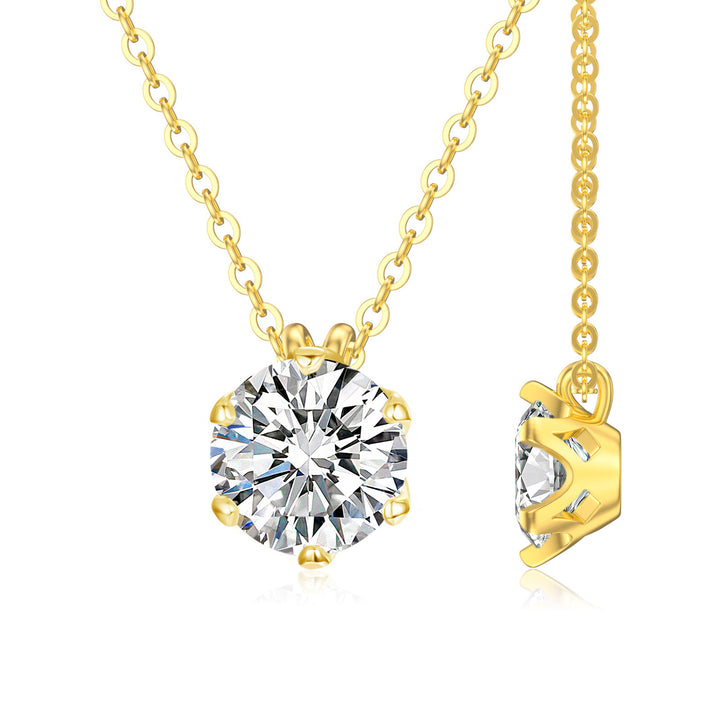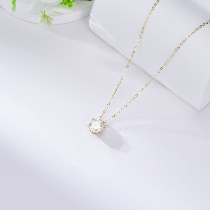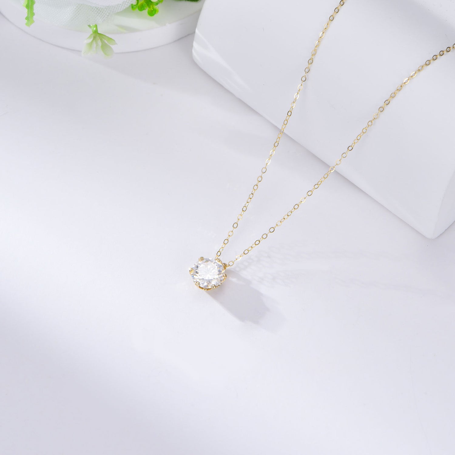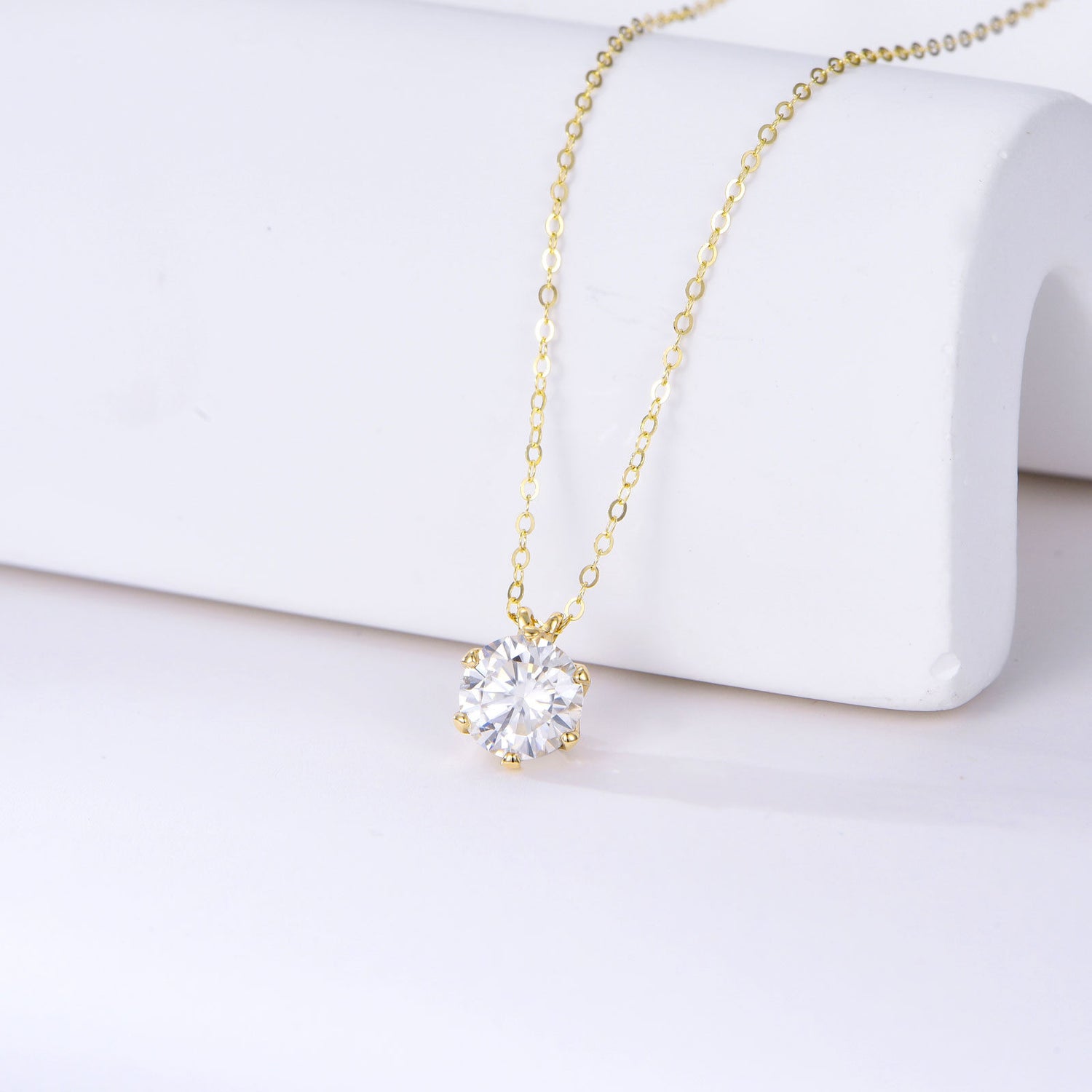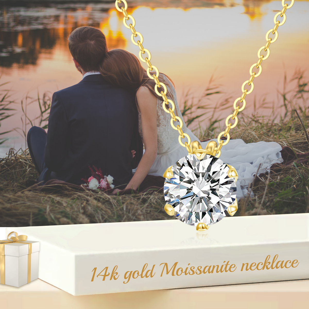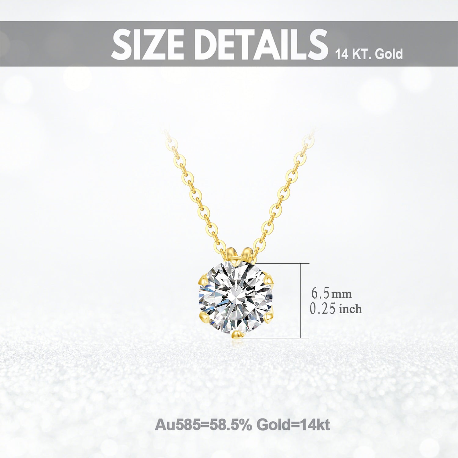 This 14K Gold Round Moissanite Pendant Necklace by YFN is the epitome of elegance and luxury. Crafted in 14K Gold, it features a stunning Round Moissanite gemstone, renowned for its exceptional fire and brilliance. This white Moissanite pendant is a dazzling alternative to traditional diamonds, offering a timeless piece that elevates any ensemble.