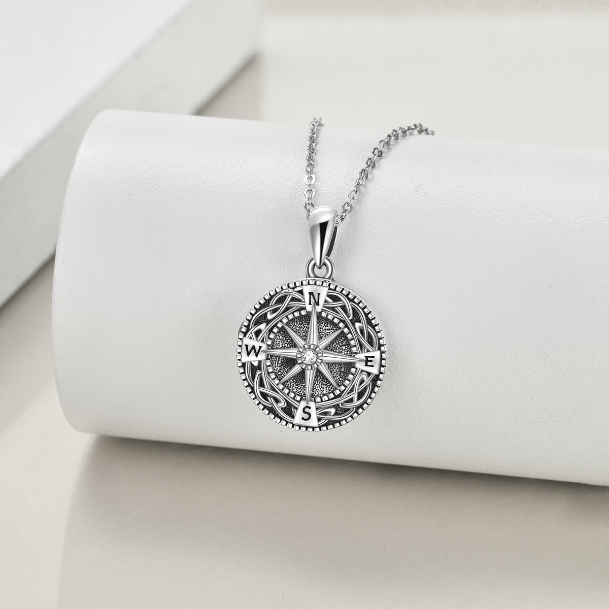 This Photo Locket Necklace is Crafted from High-Quality Sterling Silver with a Retro Silver Finish, intricately Designed with Sparkling Zircon and a Celtic Knot Compass.