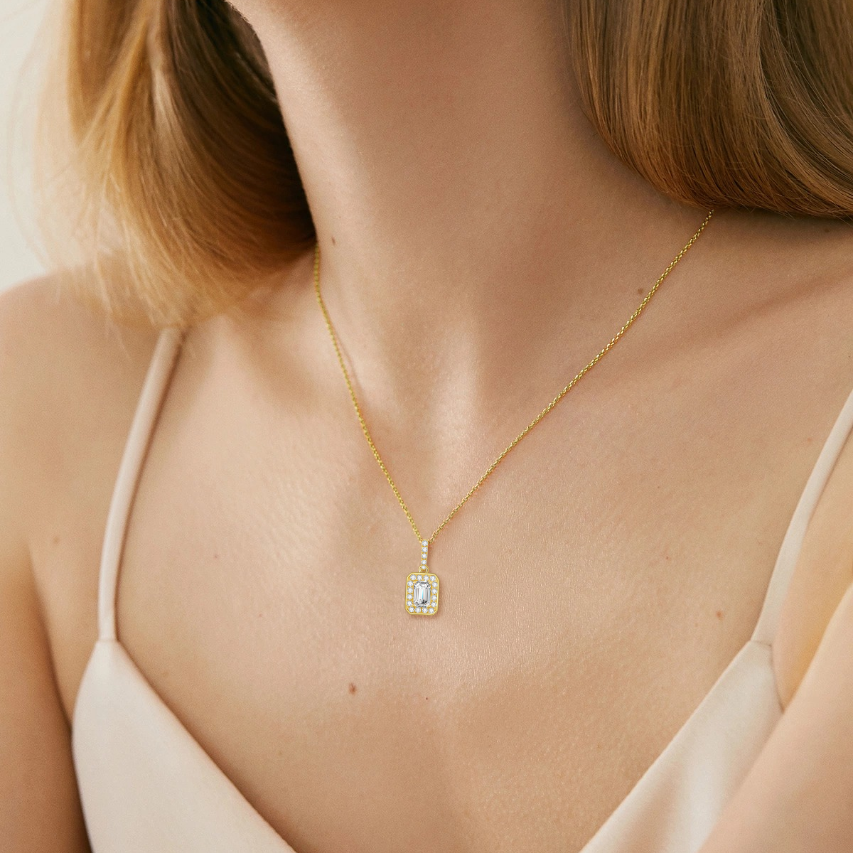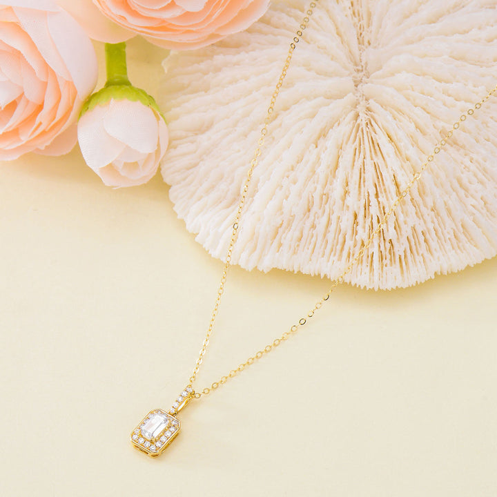 14K Gold Emerald Cut Cubic Zirconia Pendant Necklace