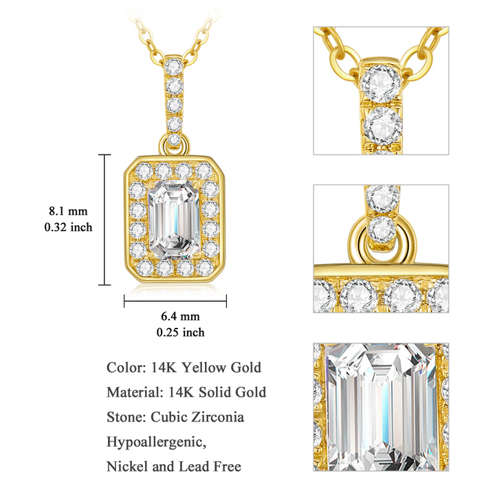 This Women's Pendant Necklace is crafted from 14K Gold, Featuring a Stunning Clear Square (Emerald Cut) Cubic Zirconia.