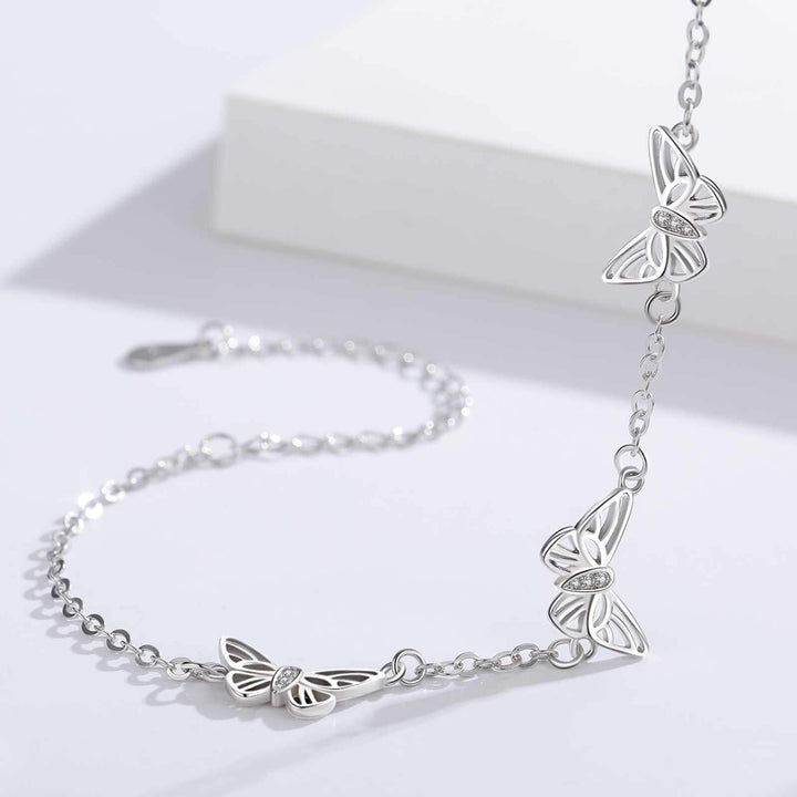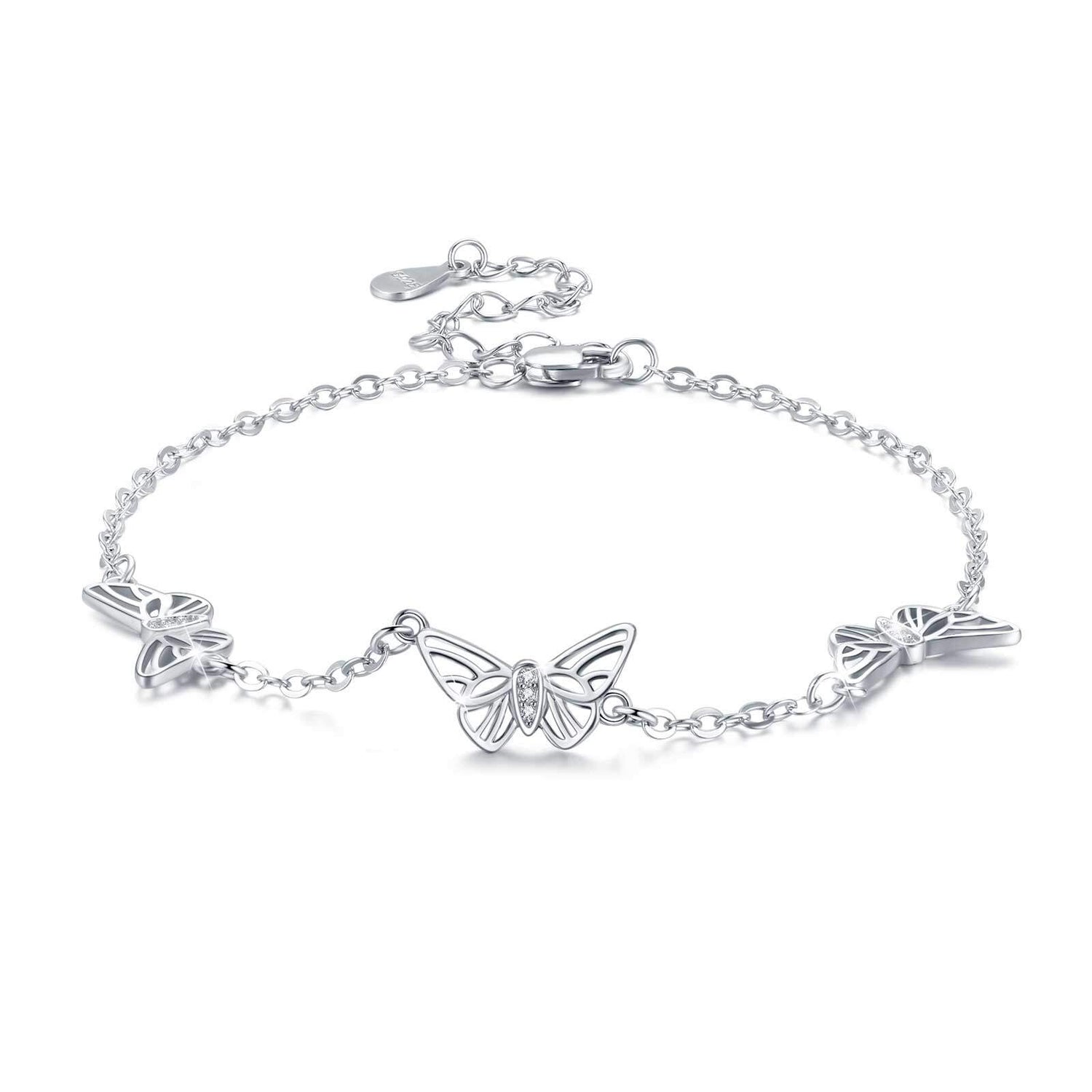 Sterling Silver Cubic Zirconia Butterfly Charm Bracelet