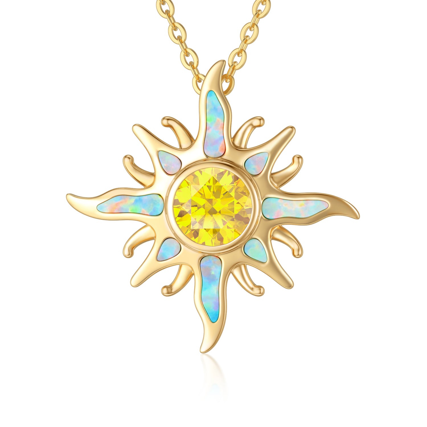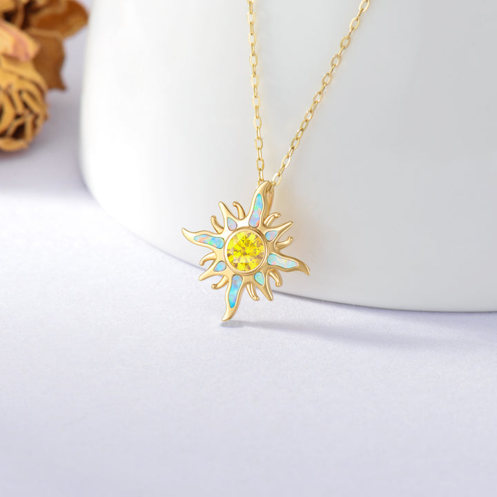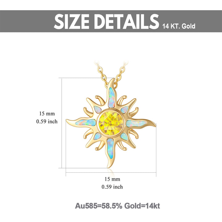 14K Gold Cubic Zirconia & Opal Sun Pendant Necklace