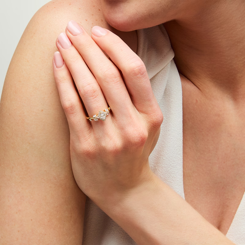 This Marquise Shaped Lab Created Diamond Engagement Ring by YFN blends elegance and luxury for couples. Crafted in 14K Gold, this exquisite halo ring is available in round and marquise shapes, featuring lab-created diamonds (0.75 to 3.25 CT T.W.). With center stones from 0.5 to 3 CT, the diamonds boast exceptional D color and VVS1-VS1 clarity. IGI certified with 3EX polish/cut/symmetry, this piece is an eco-friendly symbol of love and commitment, complemented by optional personalization with engraving.