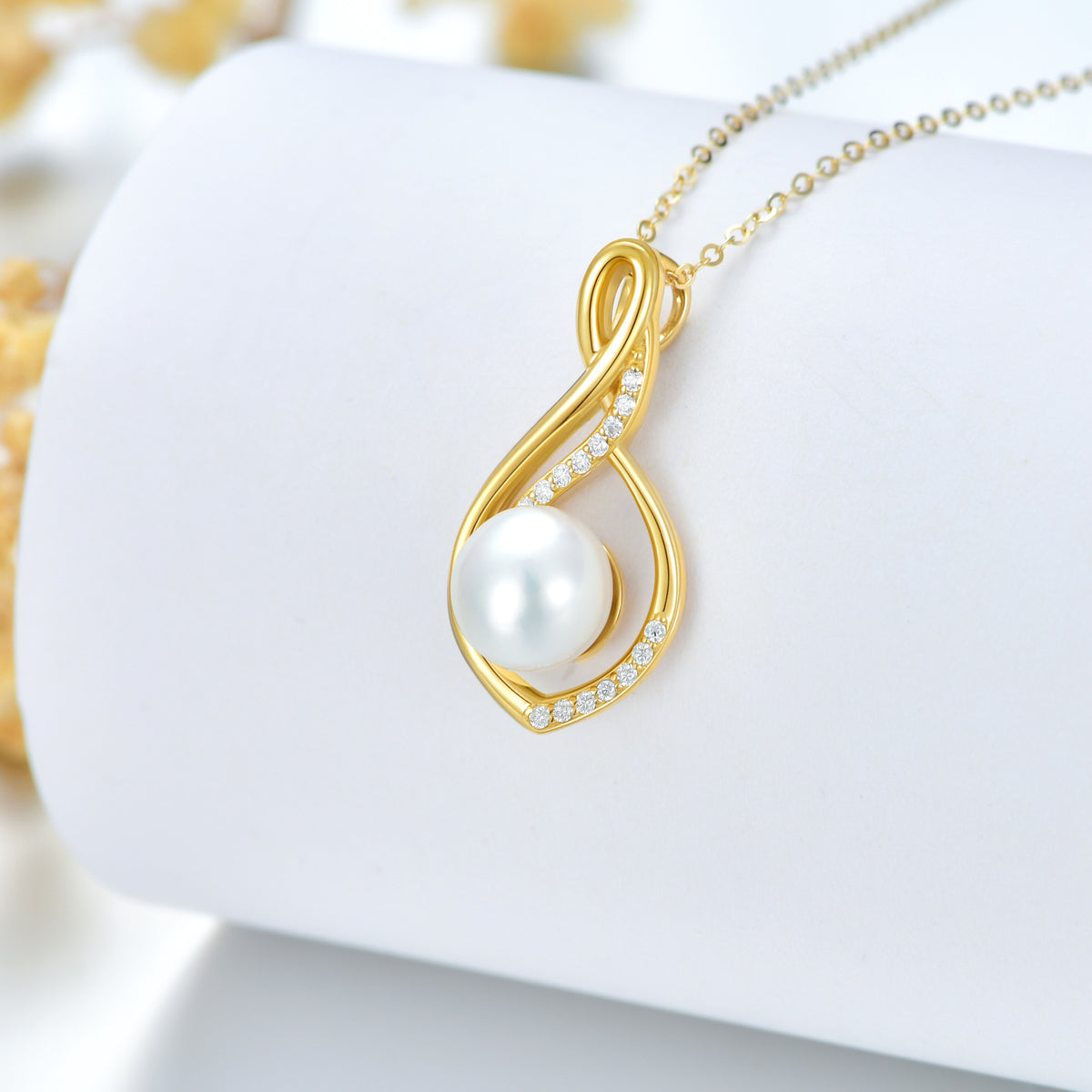 14K Gold Moissanite & Pearl Infinite Symbol Pendant Necklace