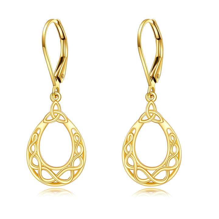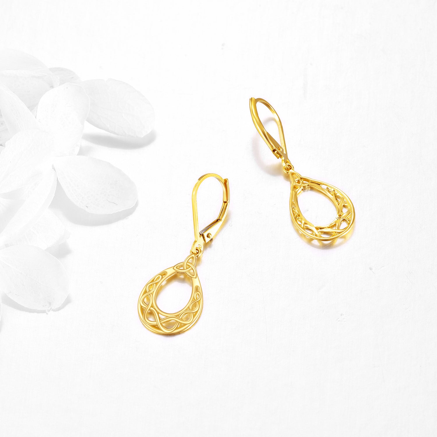 These 10K Gold Celtic Knot Drop Earrings by YFN embody timeless symbolism through the graceful interlacing of the Celtic knot, representing unity, eternity, and enduring connection. Crafted in luminous 10K gold, the design offers a captivating blend of sophistication and meaning without the need for gemstones. Lightweight and comfortable, they flow beautifully with each movement, making them perfect for both everyday wear and special occasions. Their minimalist elegance ensures effortless pairing with any style, while the secure hook closure provides lasting comfort. Refined yet expressive, these earrings celebrate love, friendship, and enduring beauty.