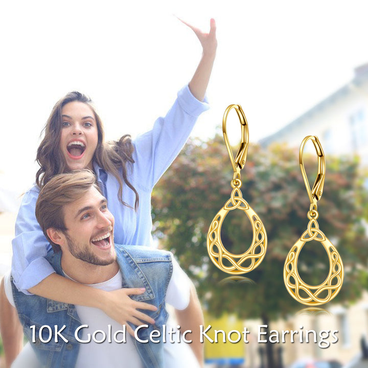Crafted in 10K gold. Features stone-free Celtic knot drop design with hook closure.