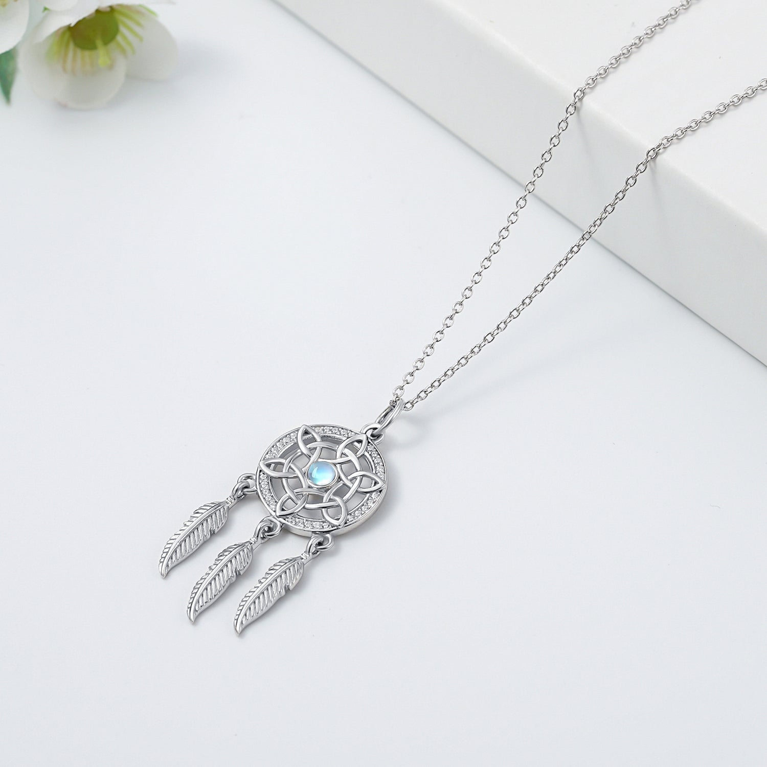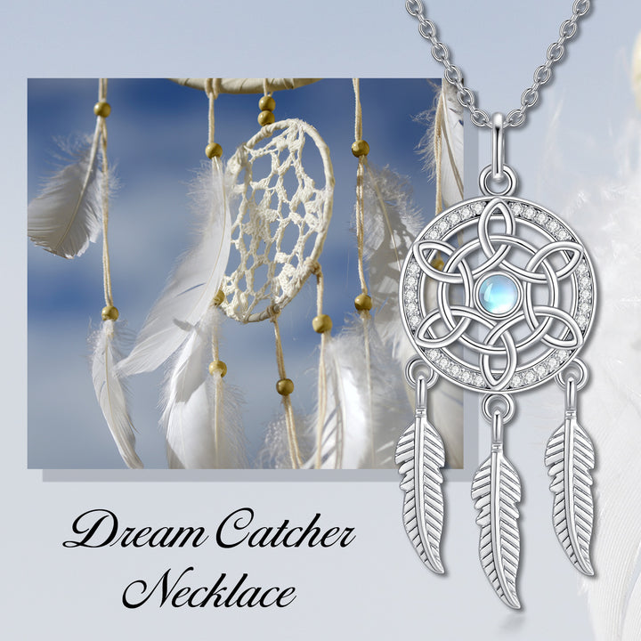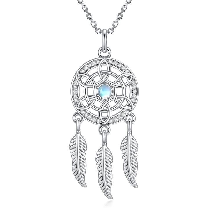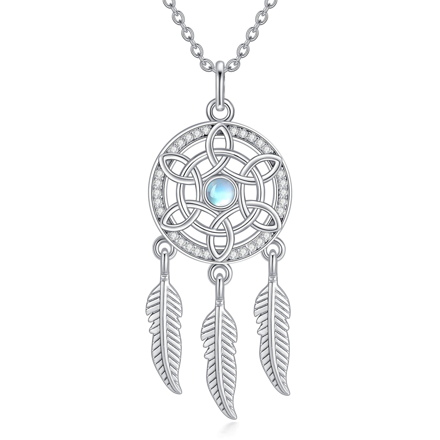 Sterling Silver Round Moonstone Dream Catcher Pendant Necklace