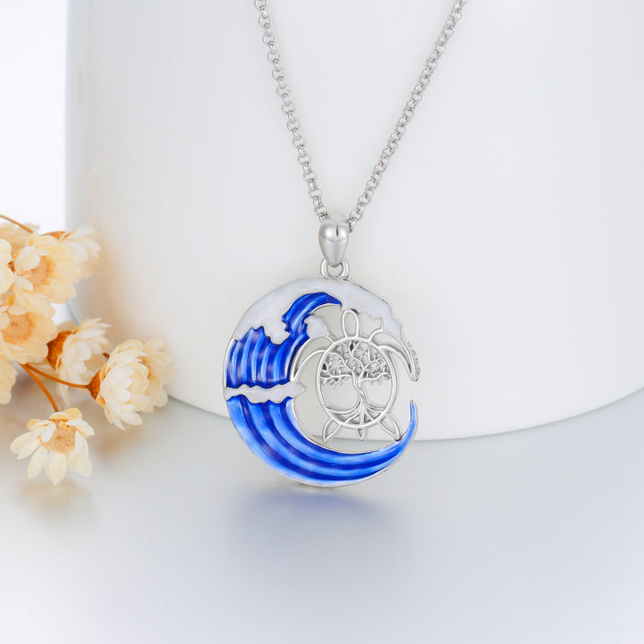 This no-stone Pendant Necklace is crafted from Sterling Silver with White Gold Plating and Features a Captivating Sea Turtle Design.