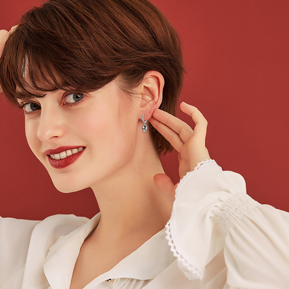 These Sterling Silver Cubic Zirconia Skull Drop Earrings by YFN offer an edgy yet elegant statement through their sparkling CZ accents and intricately sculpted skull motifs. Plated in white gold for added brilliance, the drop silhouette elongates the neck and adds dramatic flair, making them an ideal accessory for women who enjoy bold, expressive jewelry.