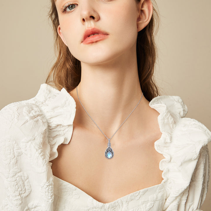Sterling Silver Moonstone Ivy & Drop Shape Urn Necklace for Ashes