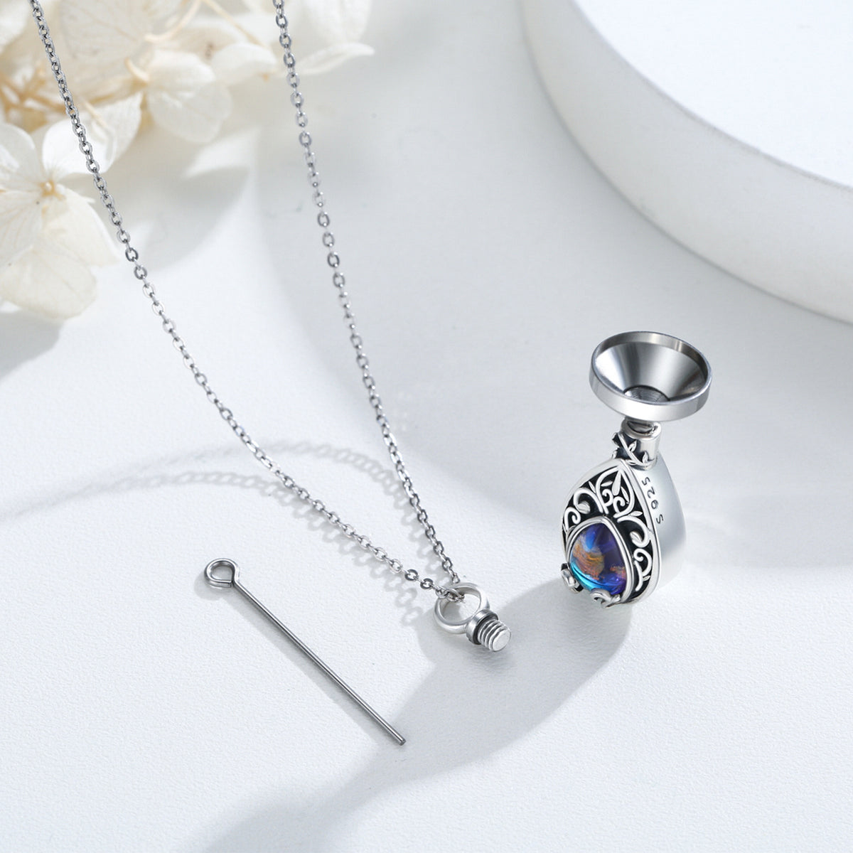 This Sterling Silver Moonstone Ivy & Drop Shape Urn Necklace for Ashes by YFN is a perfect blend of elegance and sentimental value for women. This Retro Silver sterling silver urn necklace features a mesmerizing Moonstone drop shape accented by delicate ivy detailing. The moonstone, known for its soothing energies, offers both aesthetic appeal and meaningful comfort as a thoughtful memorial.