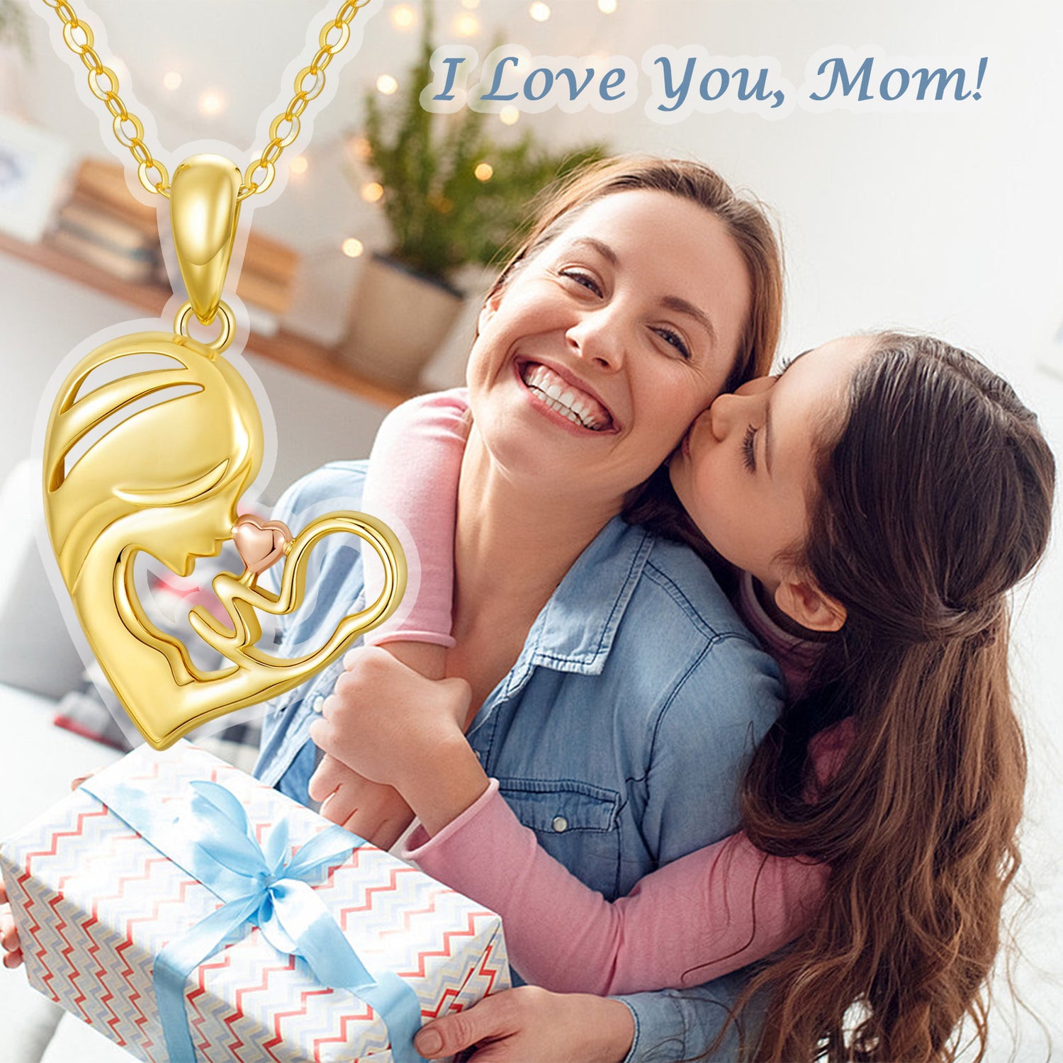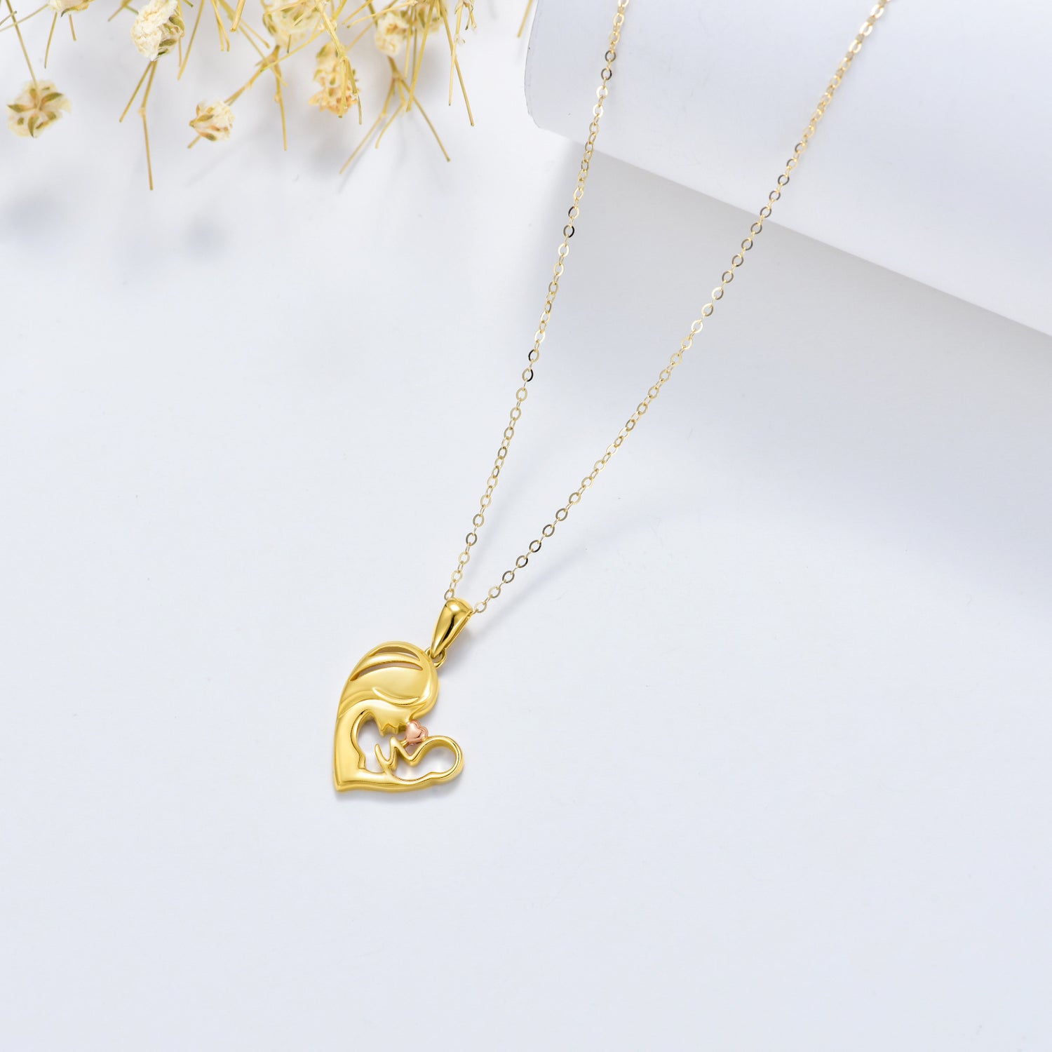 Crafted from solid 14K Gold with Gold and Rose Gold accents (Two-Tone). This is a Heart Pendant Necklace (Mother & Daughter motif, no stones).
