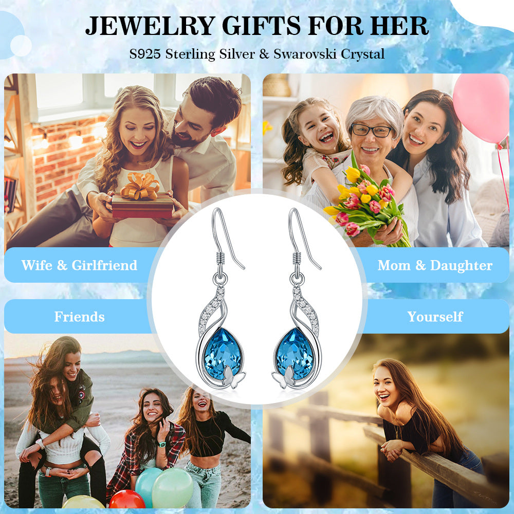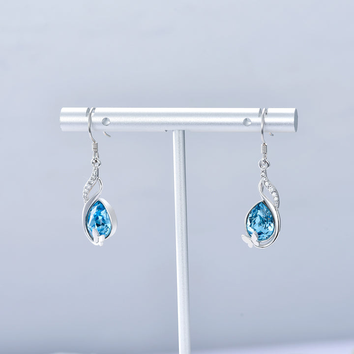 These Sterling Silver Crystal Butterfly Drop Earrings by YFN bring graceful movement and radiant sparkle to any look. The butterfly motif symbolizes transformation and beauty, while shimmering crystals add a luminous finish. White gold plating enhances the refined silhouette, making these earrings perfect for both everyday elegance and special occasions.