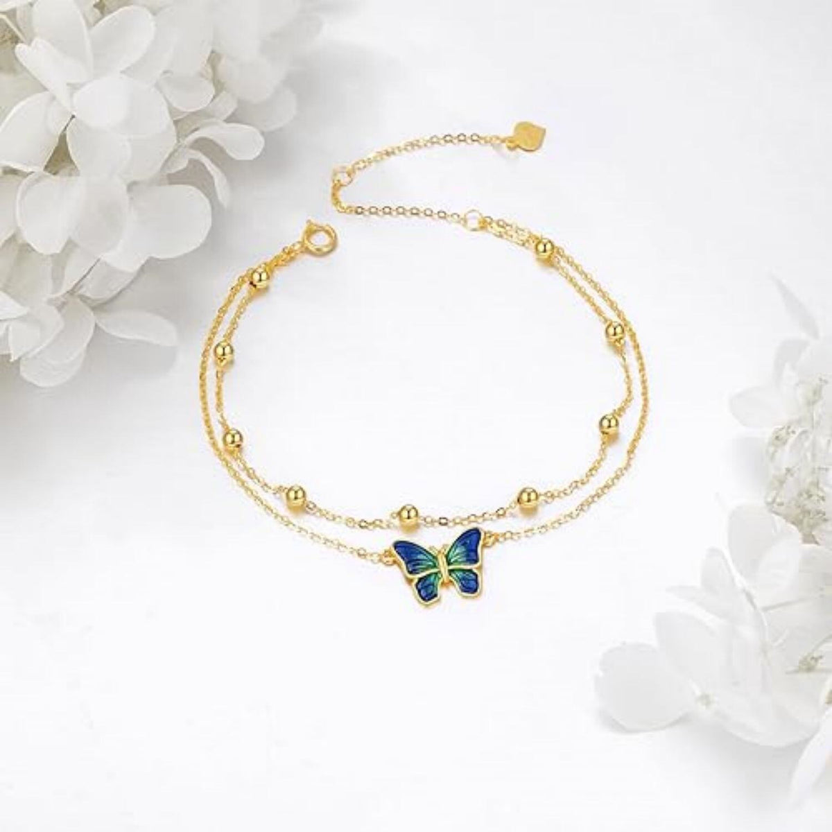This 14K Gold Butterfly Layered Bracelet by YFN embodies grace and transformation through its delicate, stone-free butterfly motifs arranged along elegant layered strands. The warm glow of 14K gold enhances the design’s airy sophistication, offering a luxurious yet versatile accessory for women who appreciate timeless femininity. Its layered construction creates depth and movement, making it ideal for elevating both everyday and formal looks. Symbolizing renewal and gentle strength, the butterflies add emotional resonance, turning the bracelet into a meaningful expression of beauty and growth. A refined addition to any jewelry collection, it exudes effortless charm.