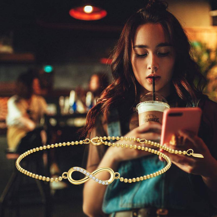 This 14K Gold Moissanite Infinite Symbol Charm Bracelet by YFN is a perfect piece for women who appreciate elegance and luxury. Crafted with meticulous attention to detail, this gold bracelet is adorned with a stunning Moissanite and features a timeless Infinite Symbol design. It is not just a beautiful accessory, but a meaningful statement that effortlessly enhances your elegance, providing a touch of sophistication and endless charm to your collection for any occasion.