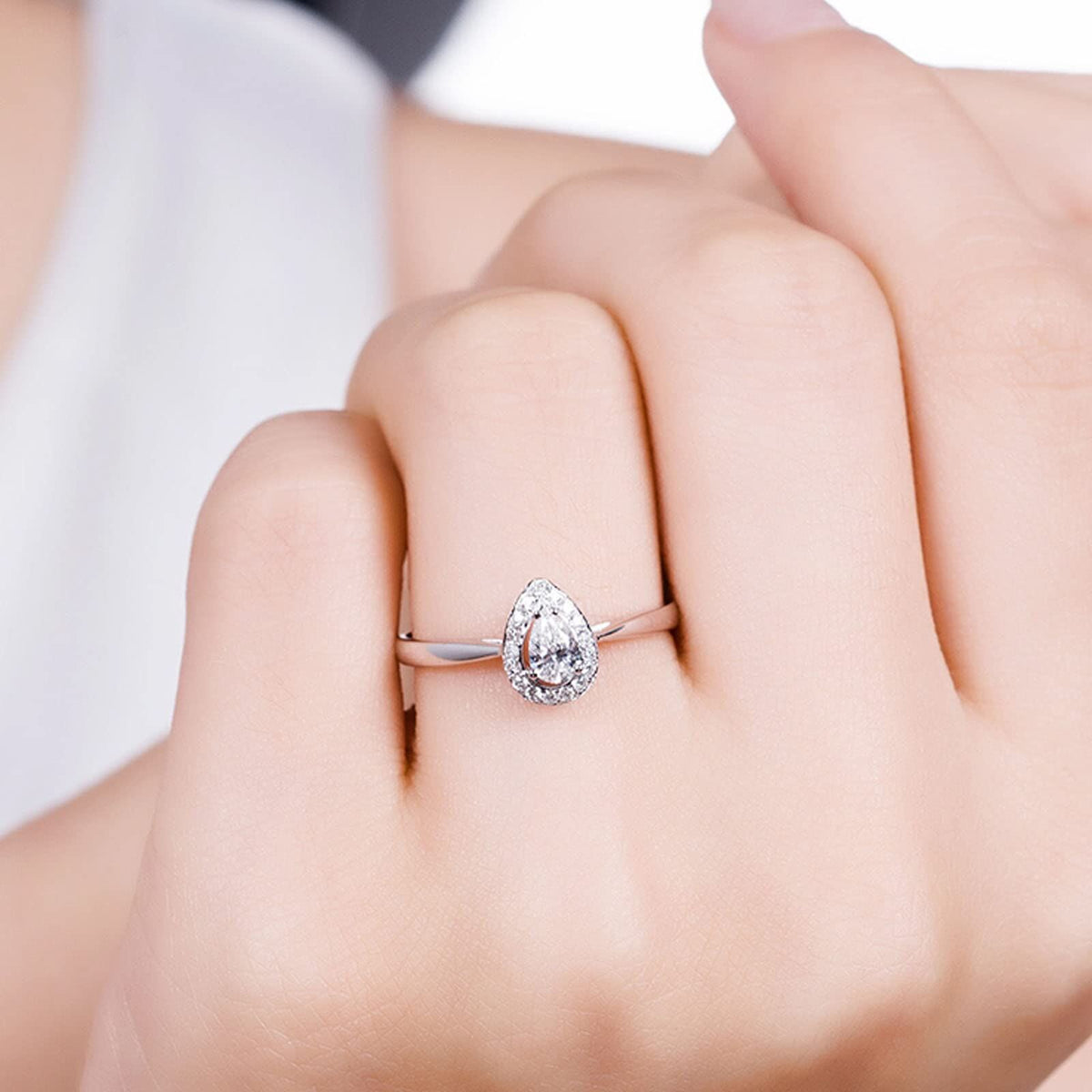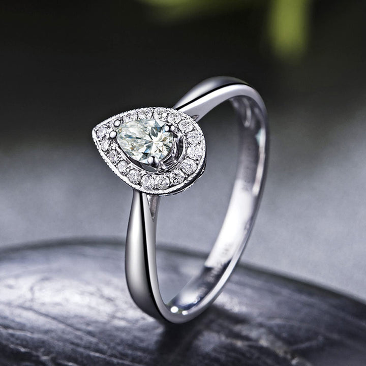 14K White Gold Pear Shaped Moissanite Ring