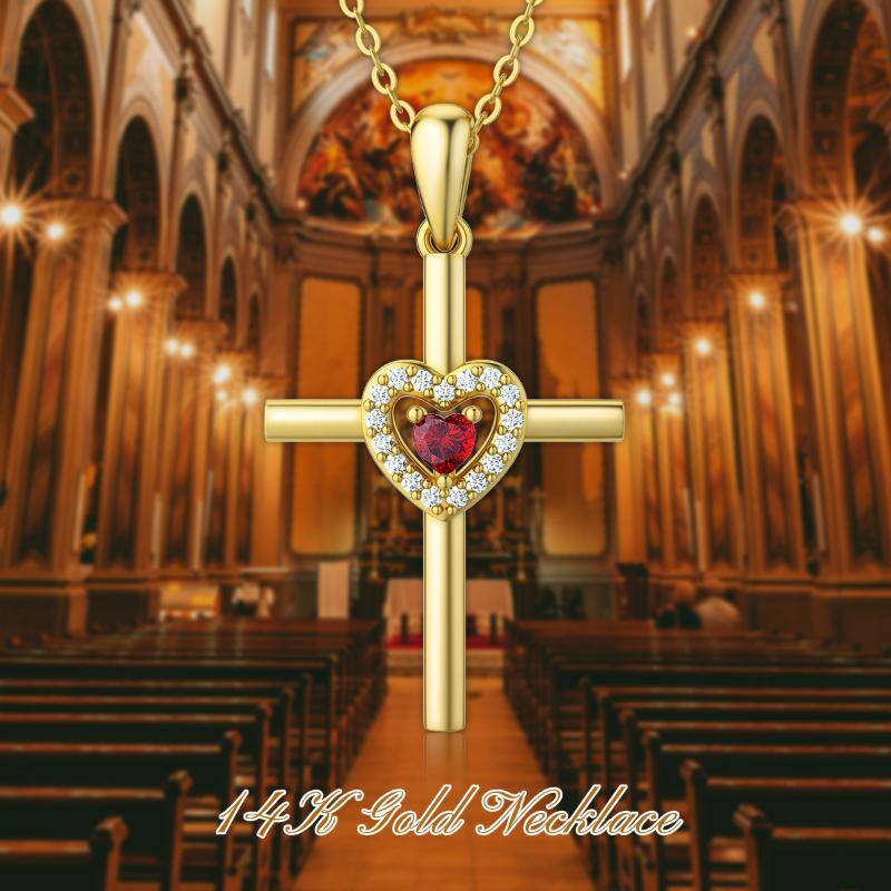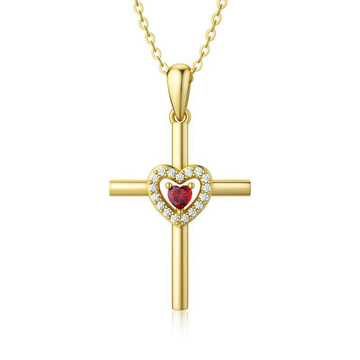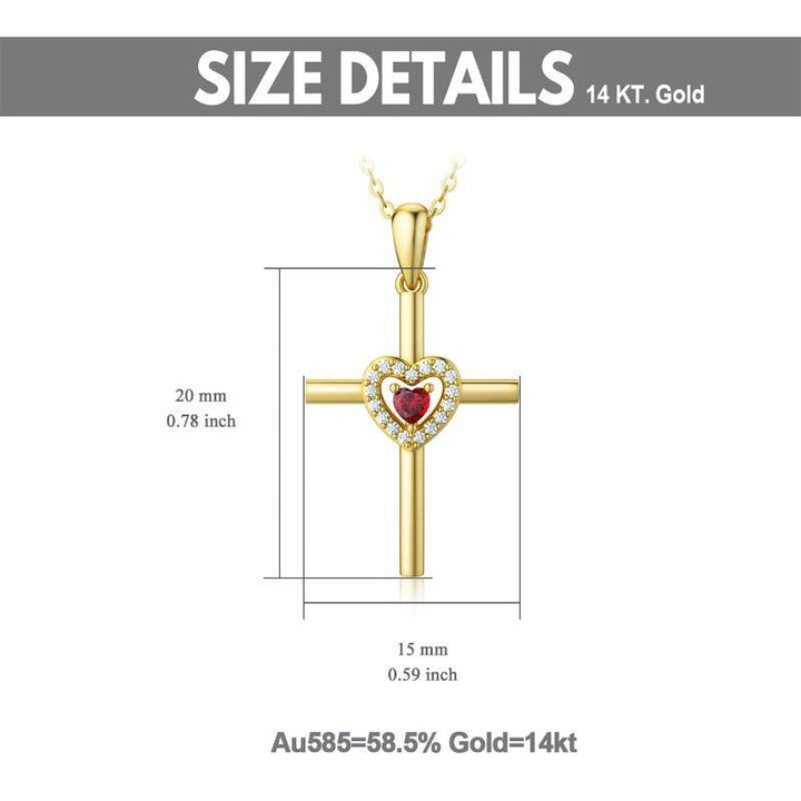 14K Gold Heart Cubic Zirconia Cross Pendant Necklace For Women Best Friend