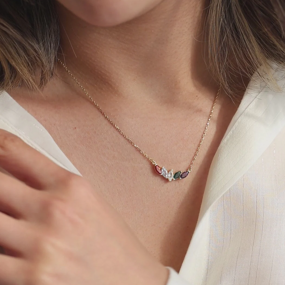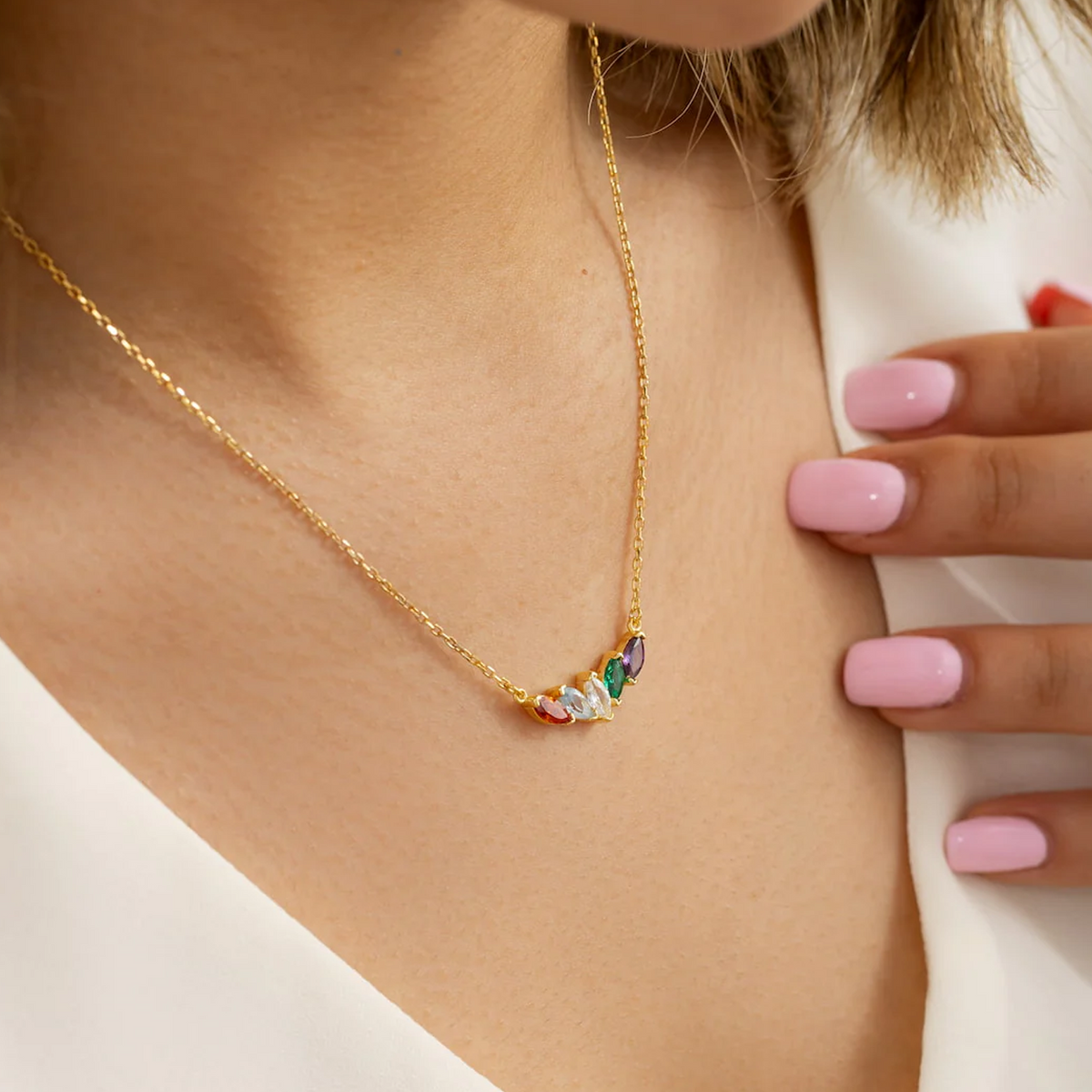 14K Gold Personalized Birthstone & Mother & Sisters Pendant Necklace