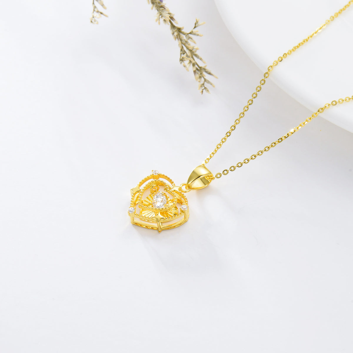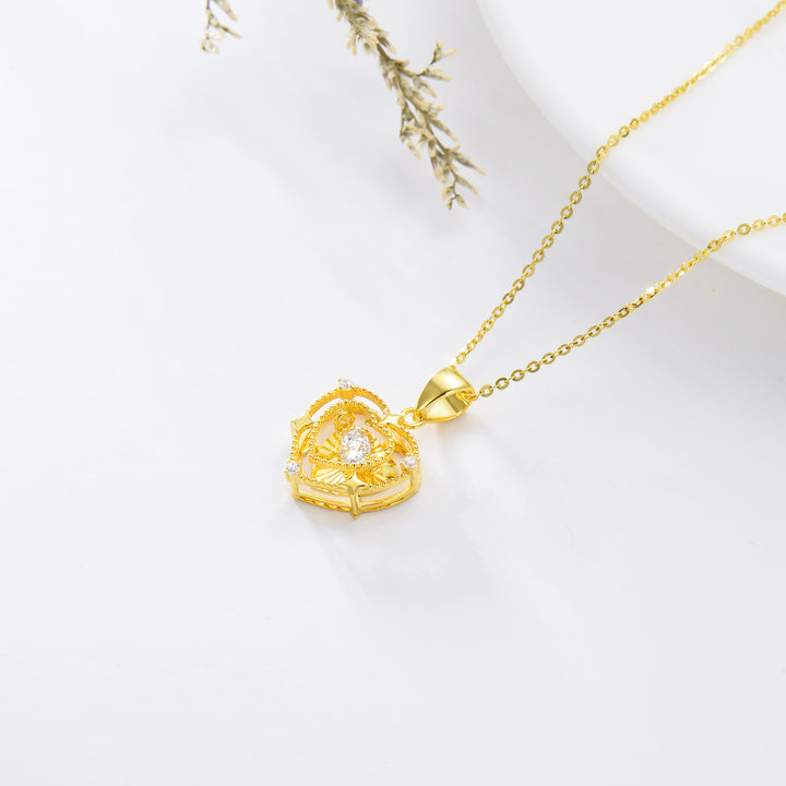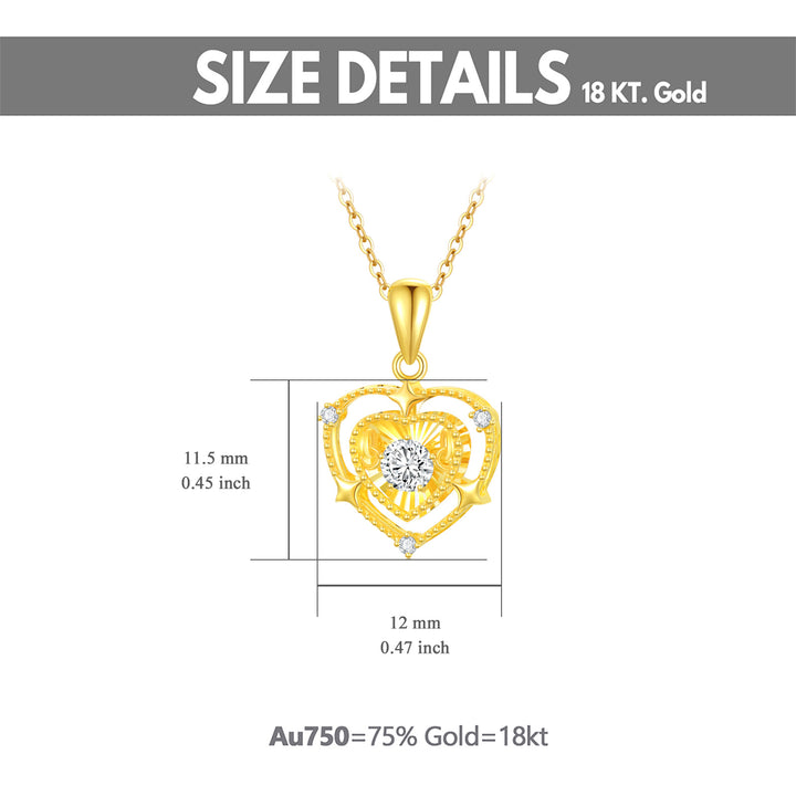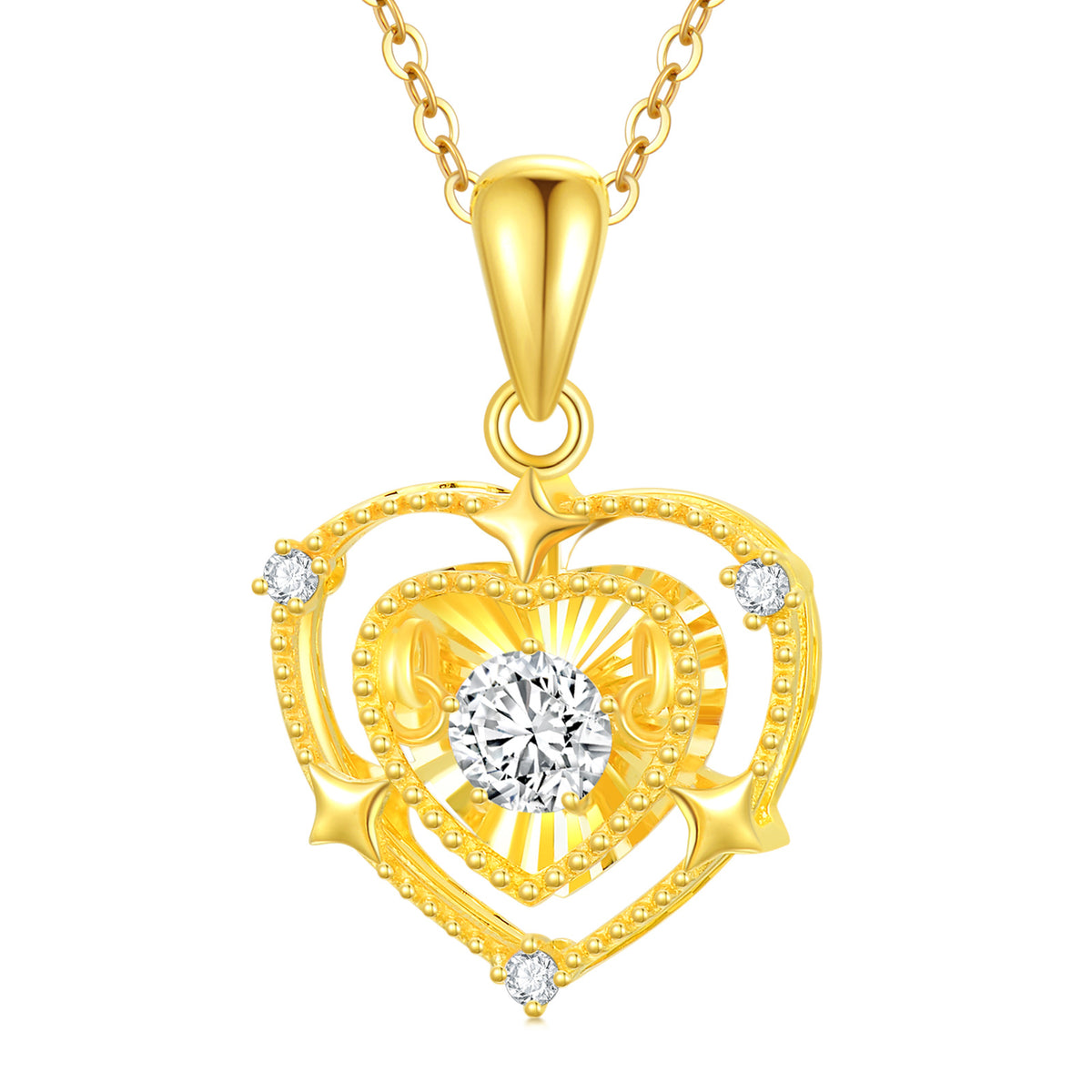 18K Gold Circular Cubic Zirconia Heart With Heart Pendant Necklace For Women